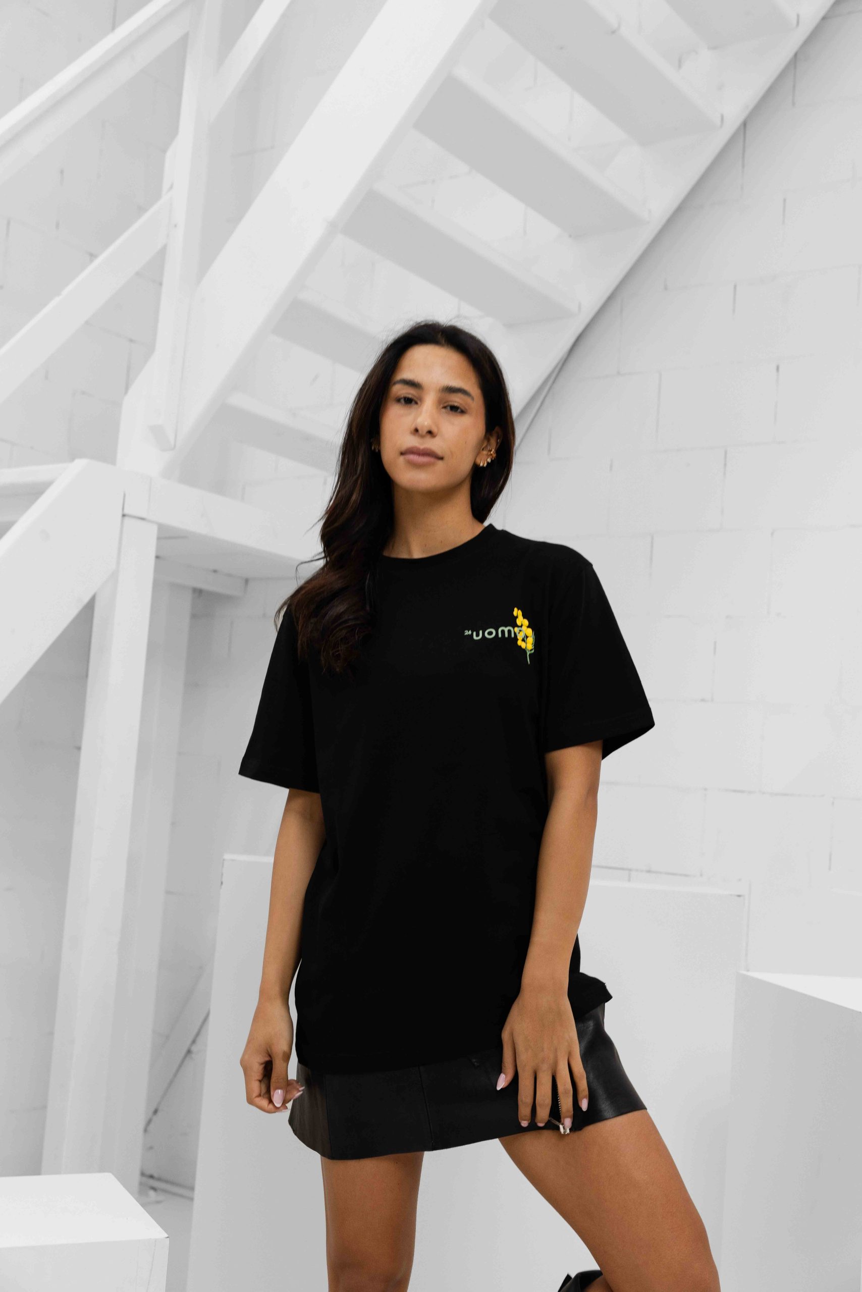 24 Uomo Flower T-Shirt Dames Zwart