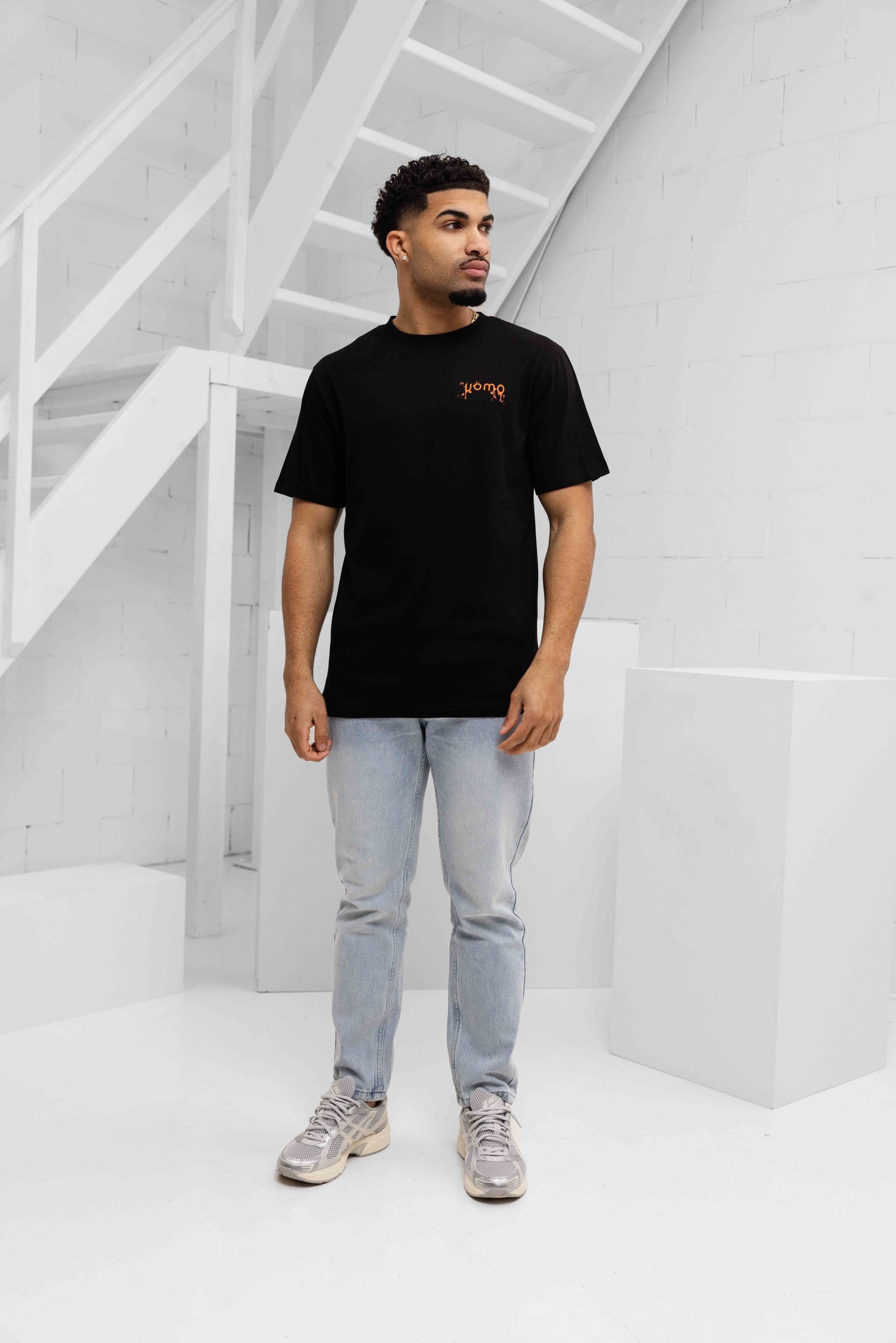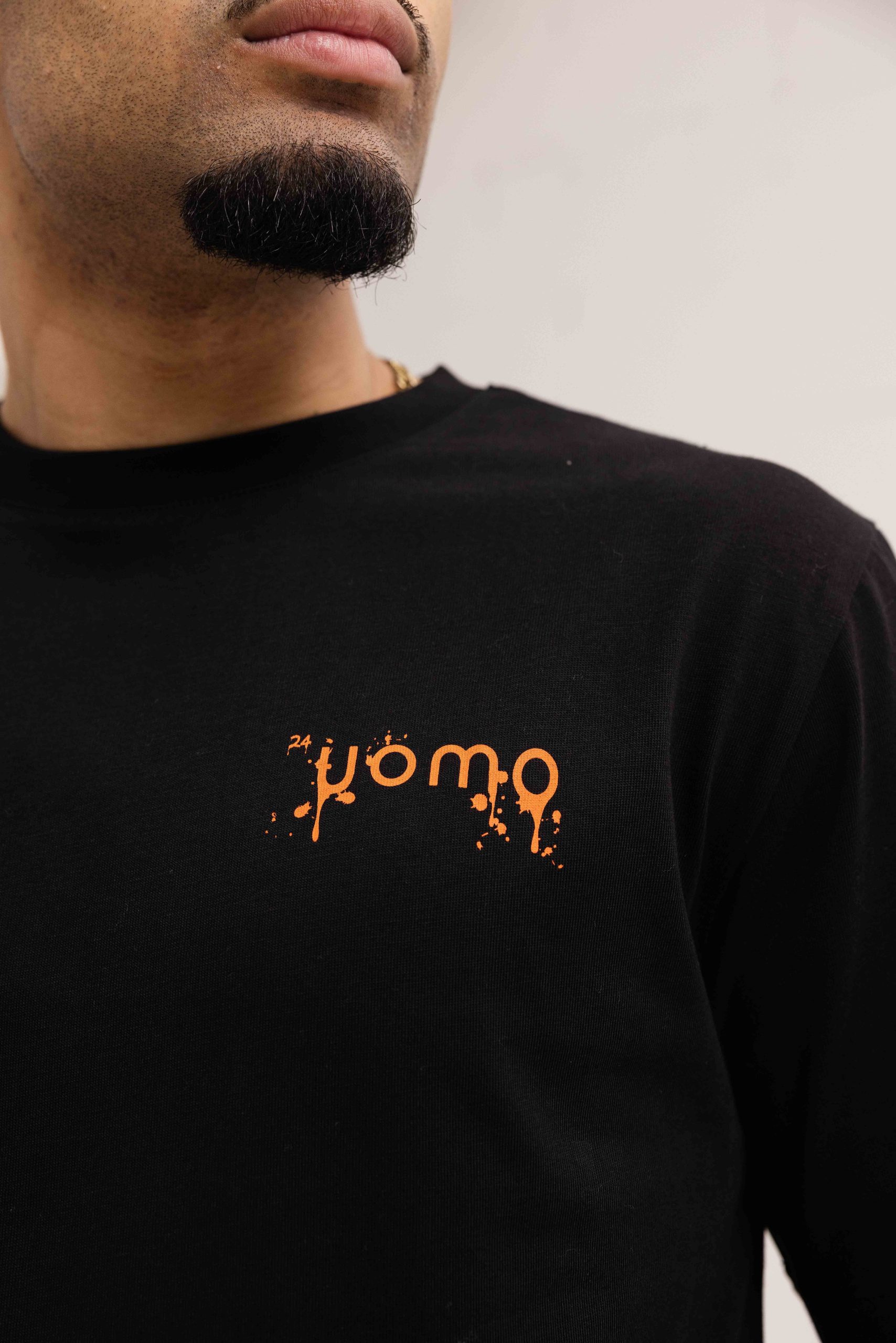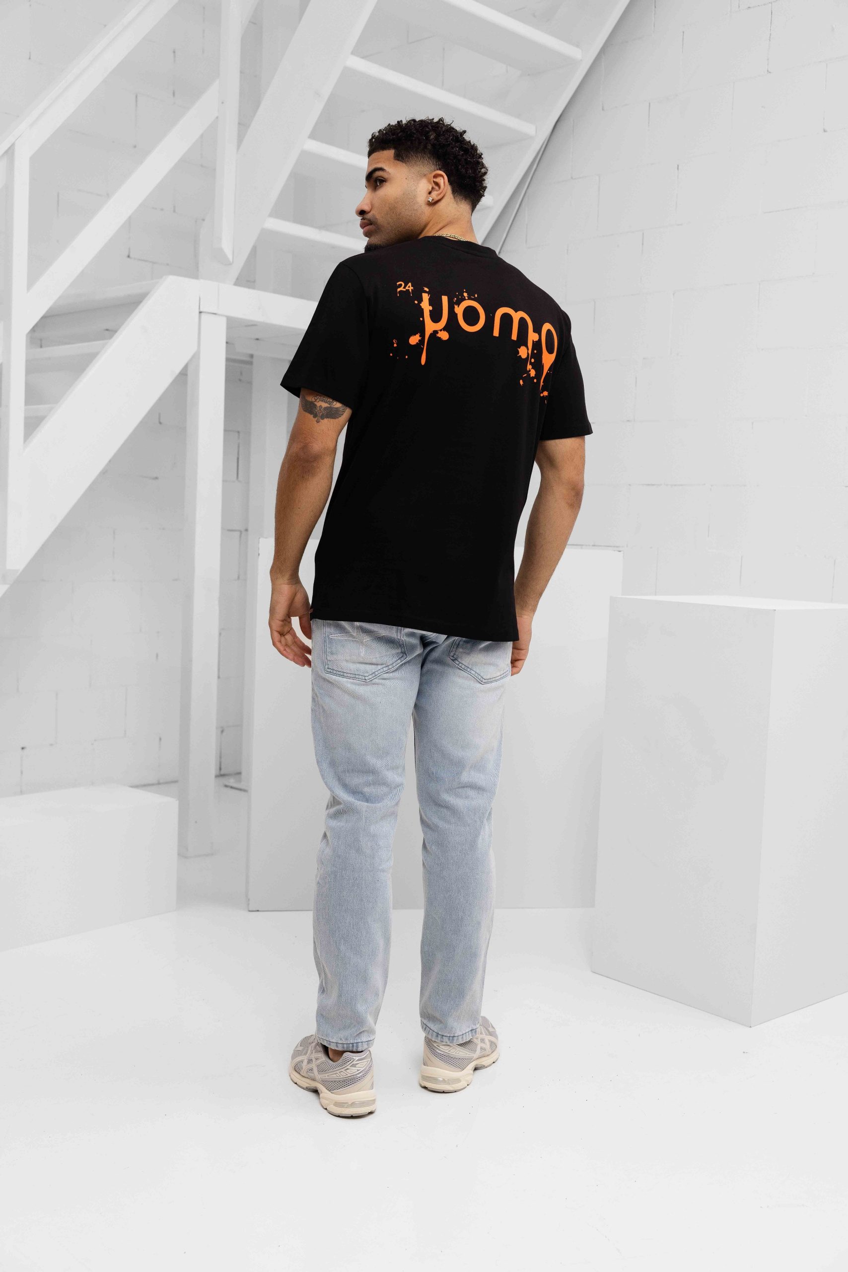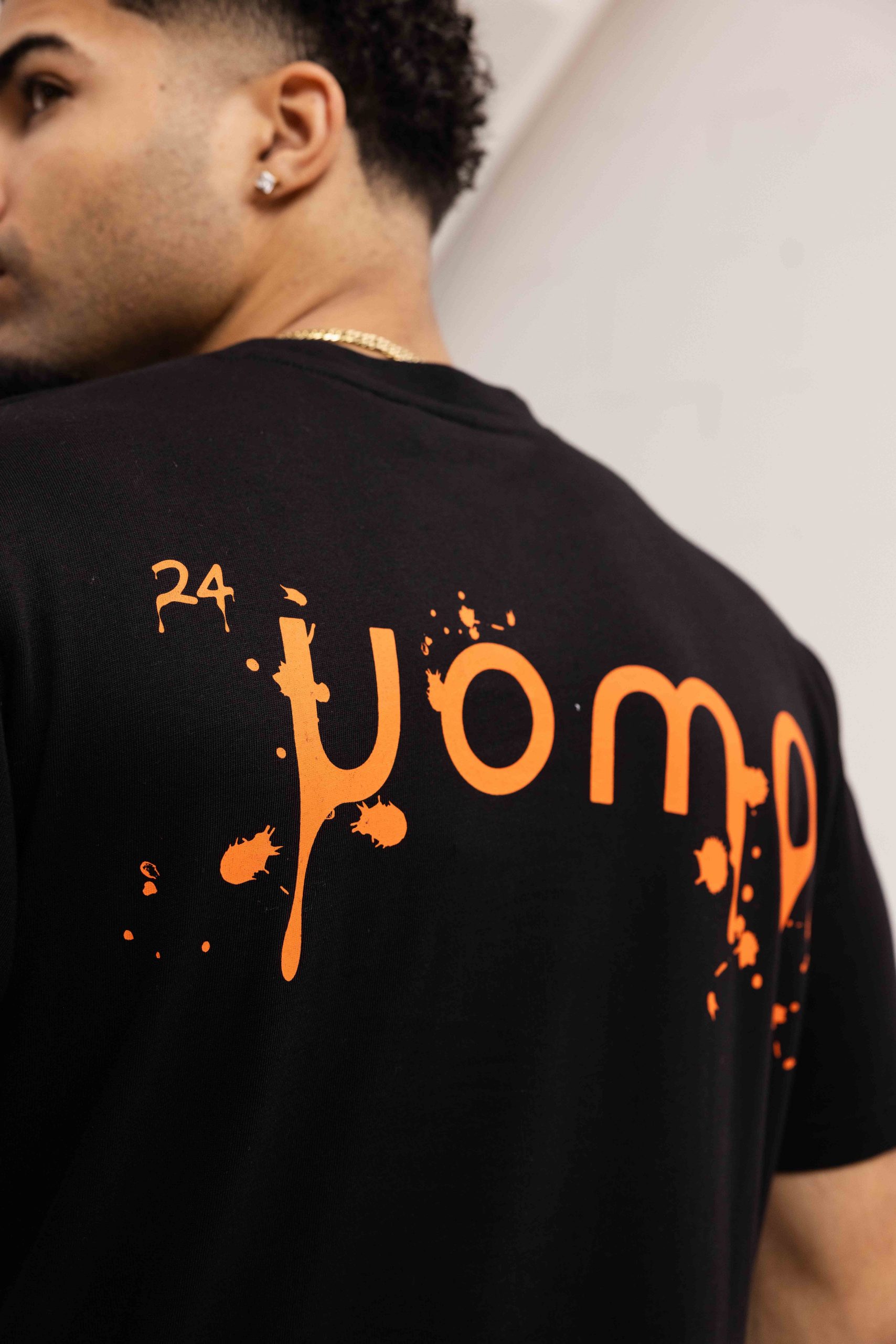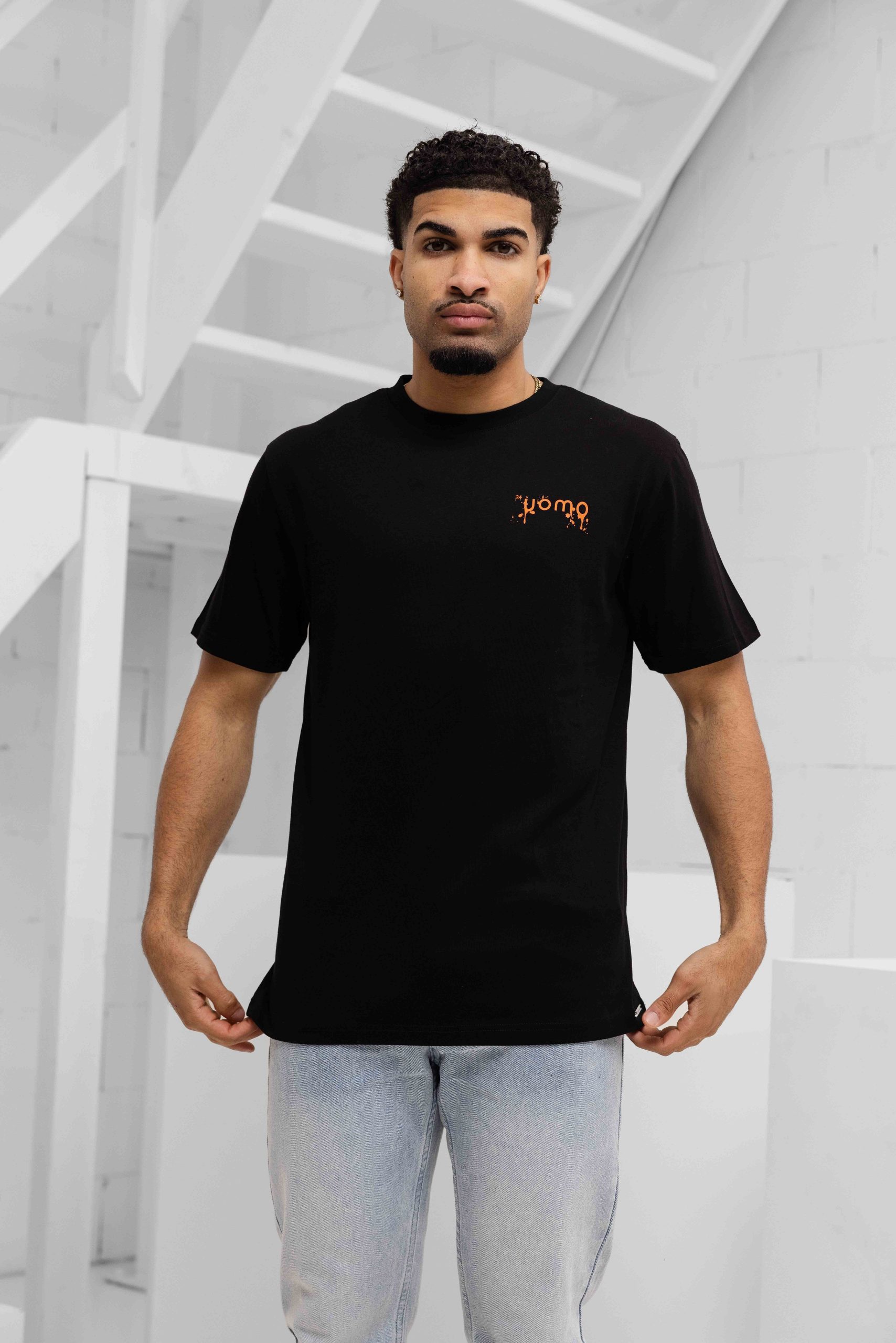 24 Uomo Paint T-Shirt Heren Zwart/Oranje