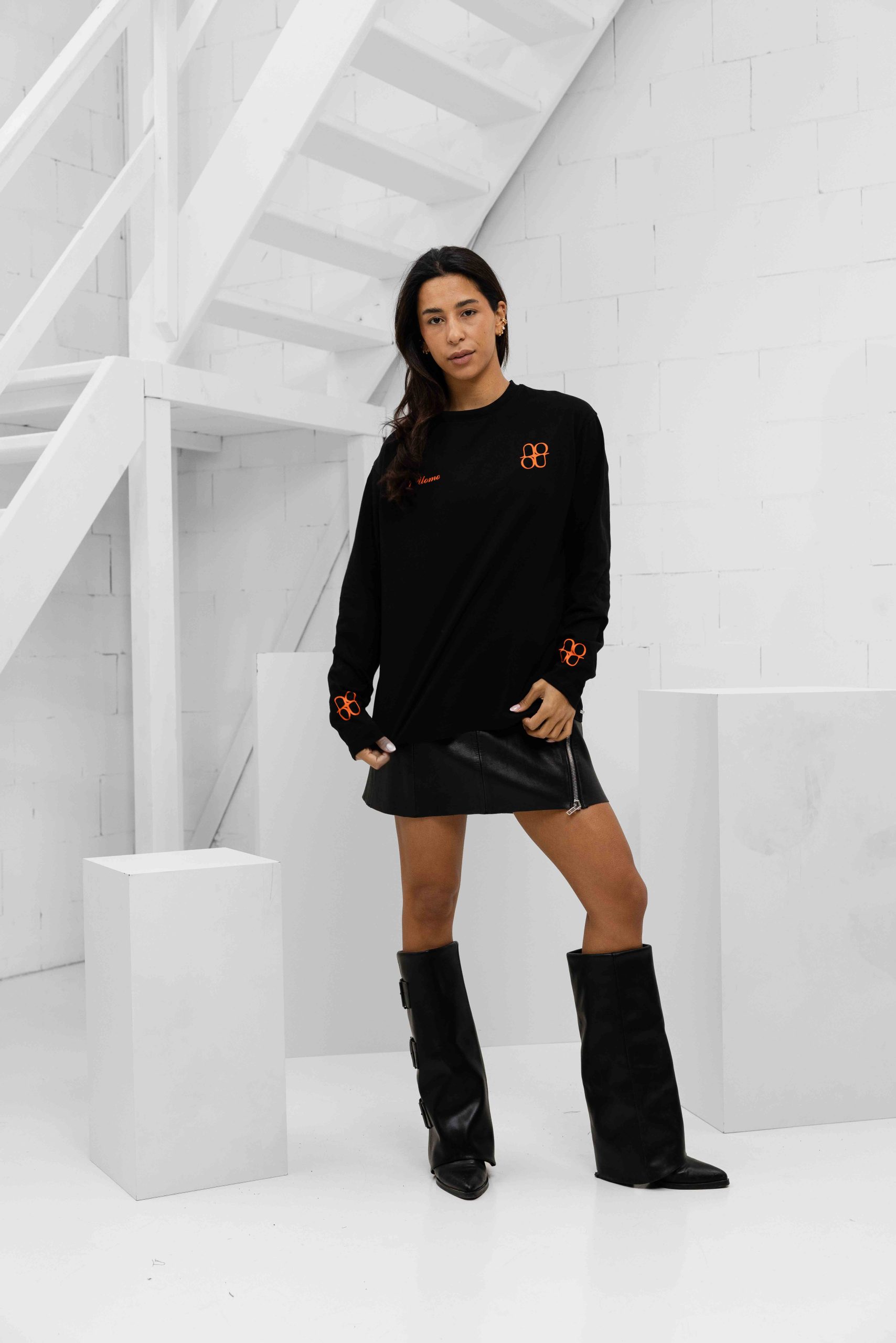 24 Uomo Symbol Longsleeve Shirt Dames Zwart/Oranje