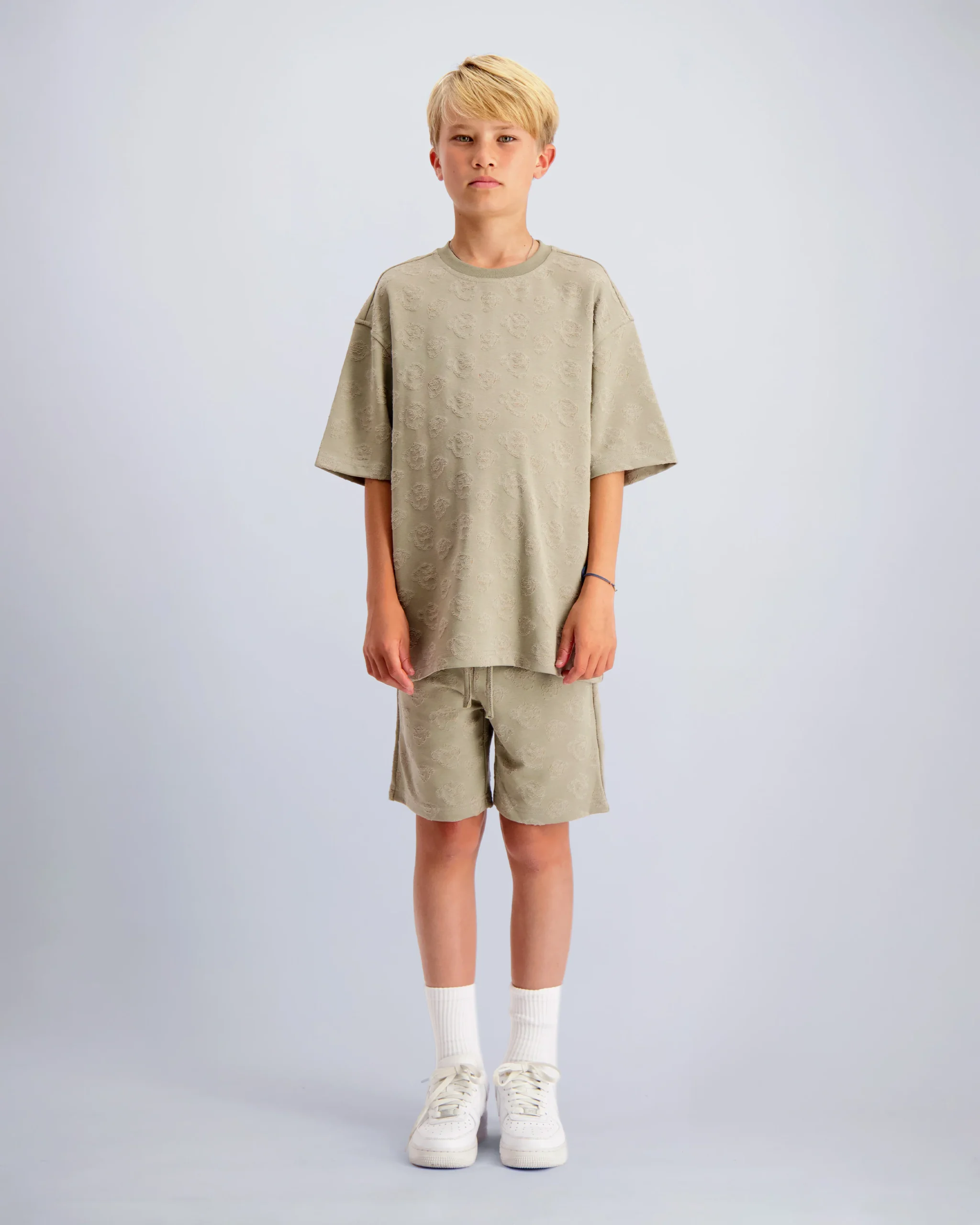 De Black Bananas Lasered Twinset Kids Grijs is een trendy zomersetje uit de Lente/Zomer collectie, speciaal ontworpen voor kids. De set bestaat uit een shirt met ronde hals en korte mouwen, en een bijpassende broek met elastische band en koord voor een comfortabele pasvorm. Het setje is gemaakt van 100% katoen in een stoere grijze kleur met een subtiel logoprint patroon. Daarnaast is de set voorzien van twee handige buitenzakken. Met dit Twinsetje zijn kids helemaal klaar voor een zomer vol avontuur en speelplezier!