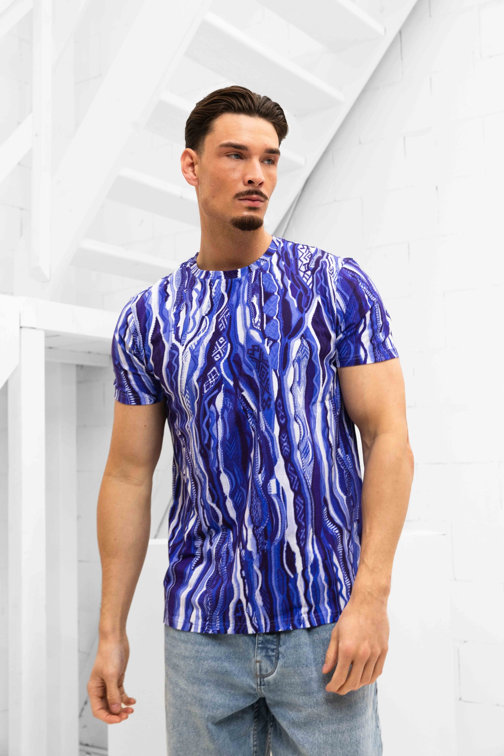 Het Carlo Colucci C3410-102 T-Shirt voor heren is een trendy toevoeging aan je zomergarderobe. Dit T-shirt heeft een ronde hals en korte mouwen, waardoor het perfect is voor warme dagen. Het shirt heeft een normale pasvorm en is gemaakt van 92% katoen en 8% elastaan, waardoor het comfortabel en ademend is. De paarse en blauwe print geeft het shirt een opvallende en stijlvolle uitstraling. Dit T-shirt is onderdeel van de Lente/Zomer collectie van Carlo Colucci en is een must-have voor elke moderne man.