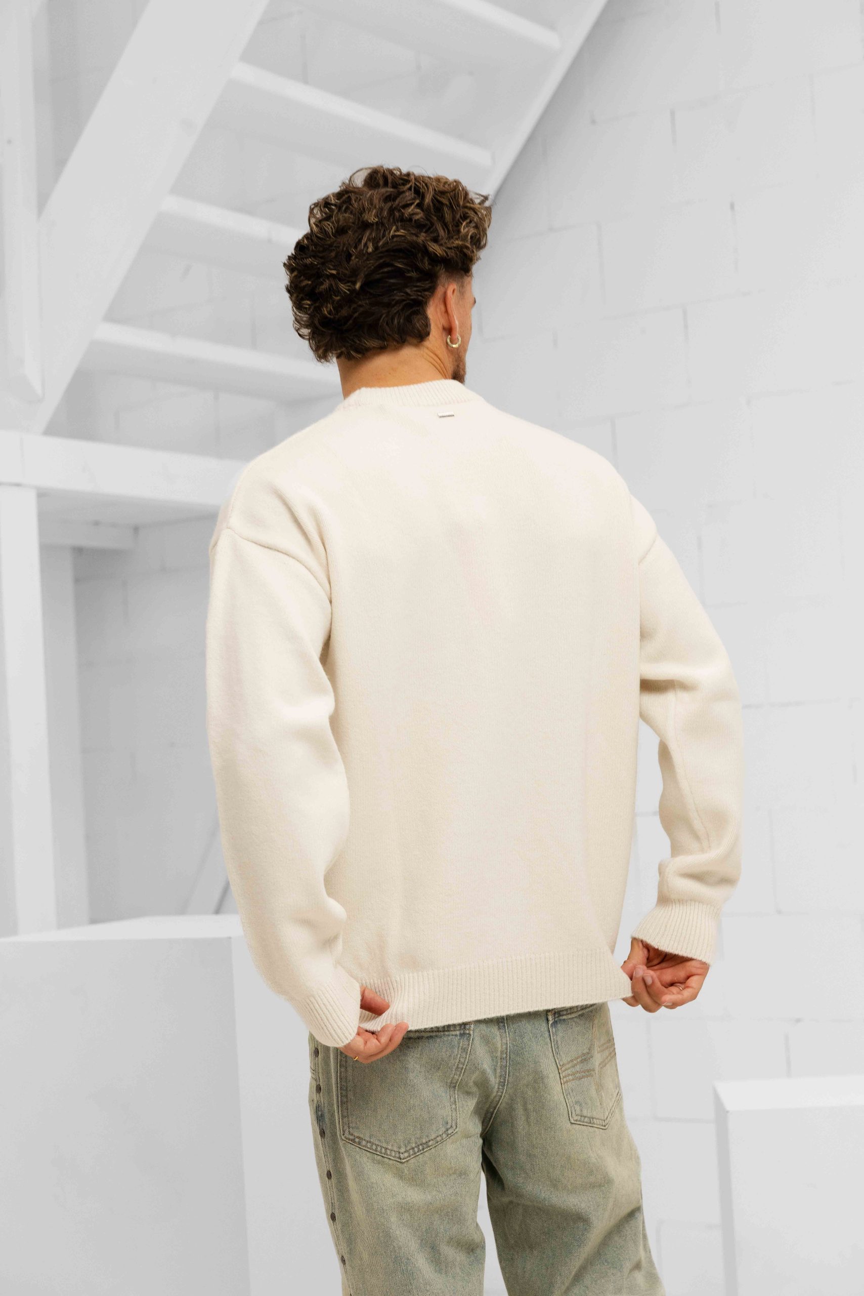 Fluffy Essence Knit Sweater Heren Gebroken Wit