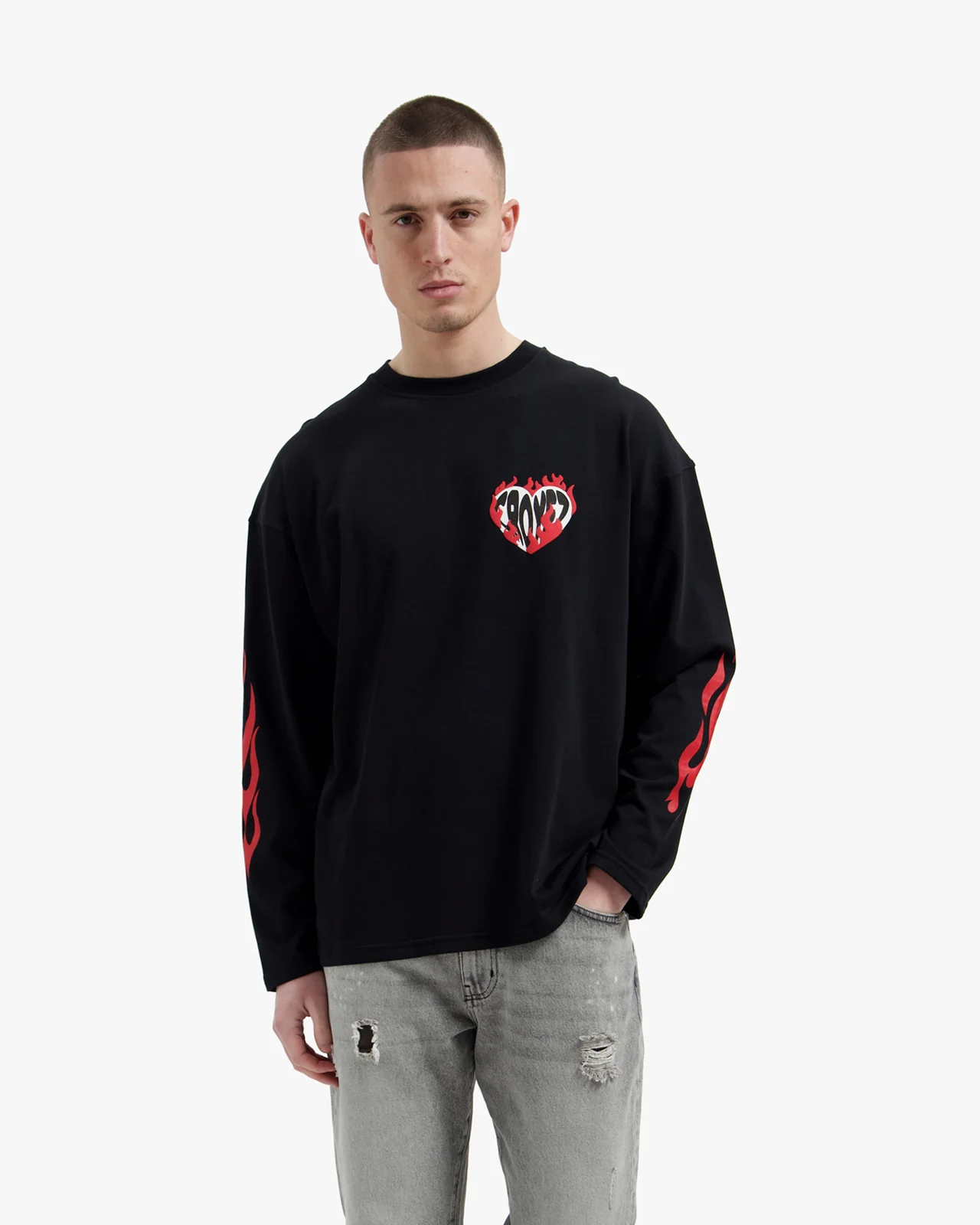 Heren > Croyez Heren > Croyez Heart On Fire Longsleeve T-Shirt Heren Zwart
