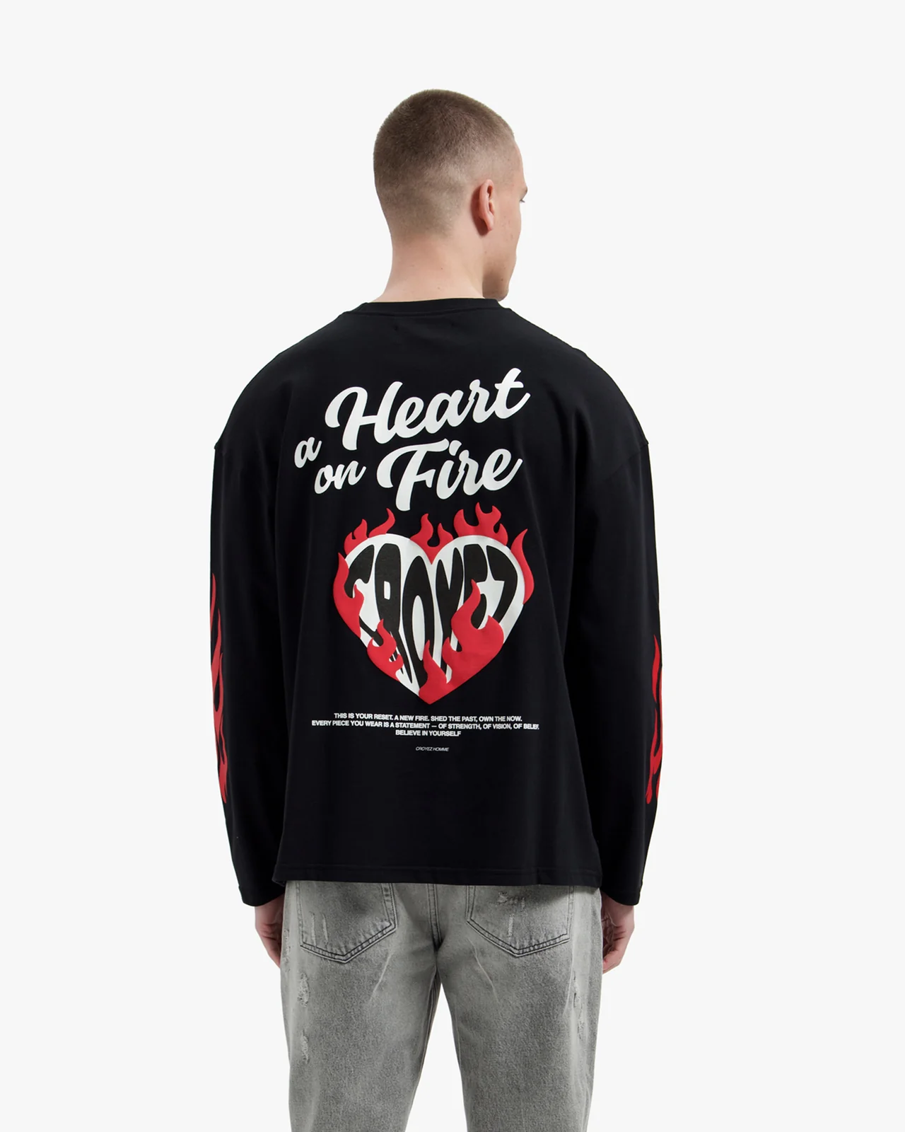 Croyez Heart On Fire Longsleeve T-Shirt Heren Zwart
