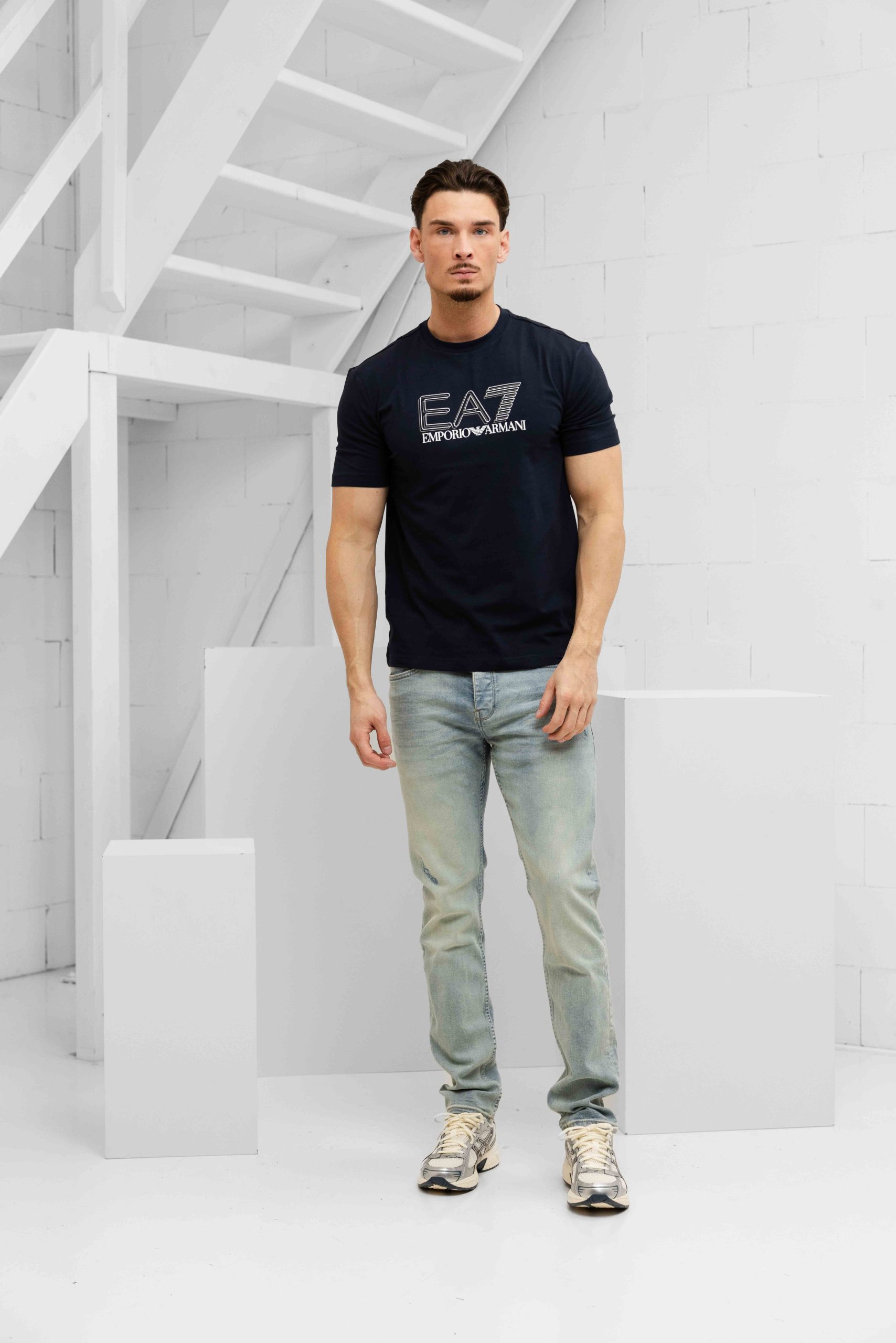 EA7 7M001308 T-Shirt Heren Donkerblauw