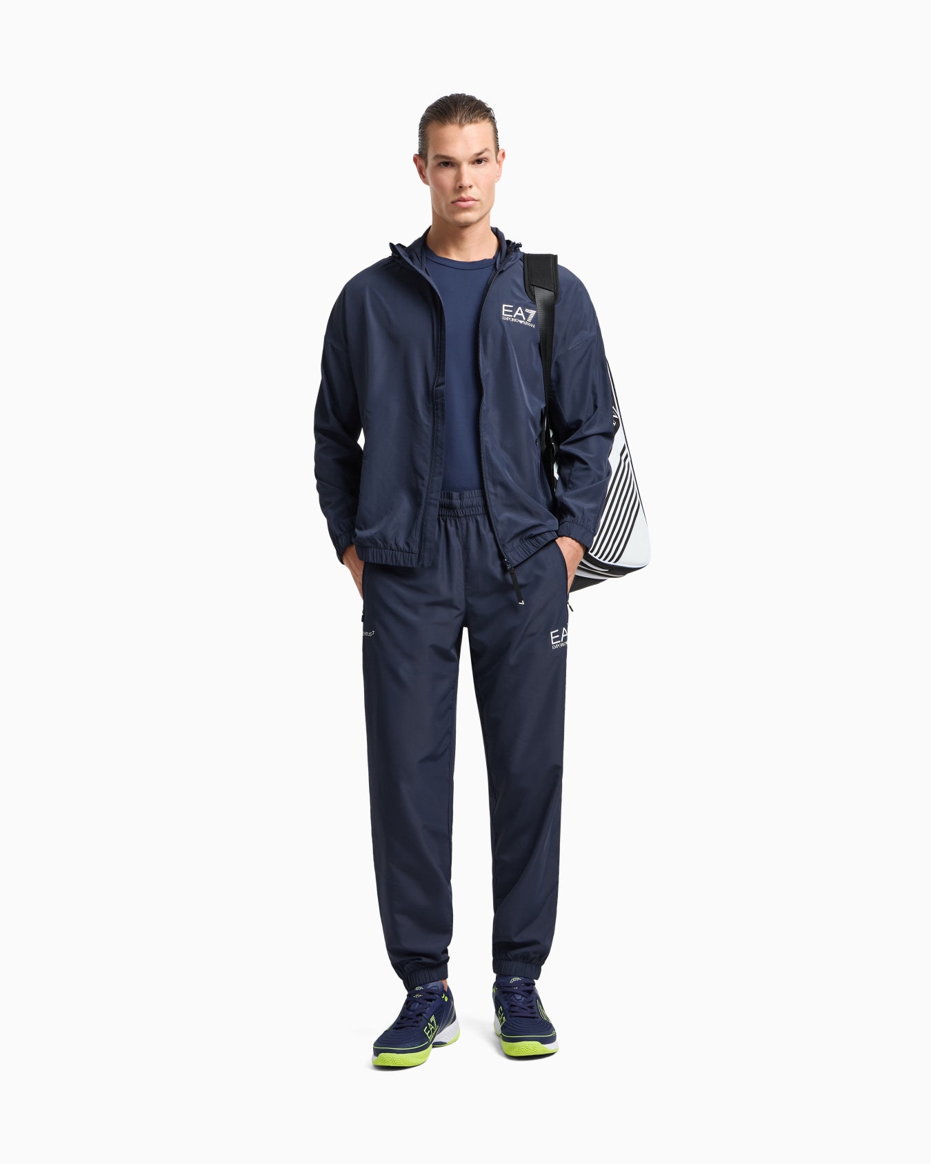 Het EA7 Emporio Armani 8NPV08 Trainingspak voor Heren in donkerblauw is perfect voor de Herfst/Winter collectie. Dit trainingspak heeft een capuchon en lange mouwen, gemaakt van 100% Polyester voor een comfortabele pasvorm. De Regularfit zorgt ervoor dat het trainingspak mooi aansluit op het lichaam. De zwarte kleur met logoprint geeft een stoere uitstraling aan dit trainingspak van het bekende merk Emporio Armani. Perfect voor sportieve activiteiten of gewoon voor een casual look.
