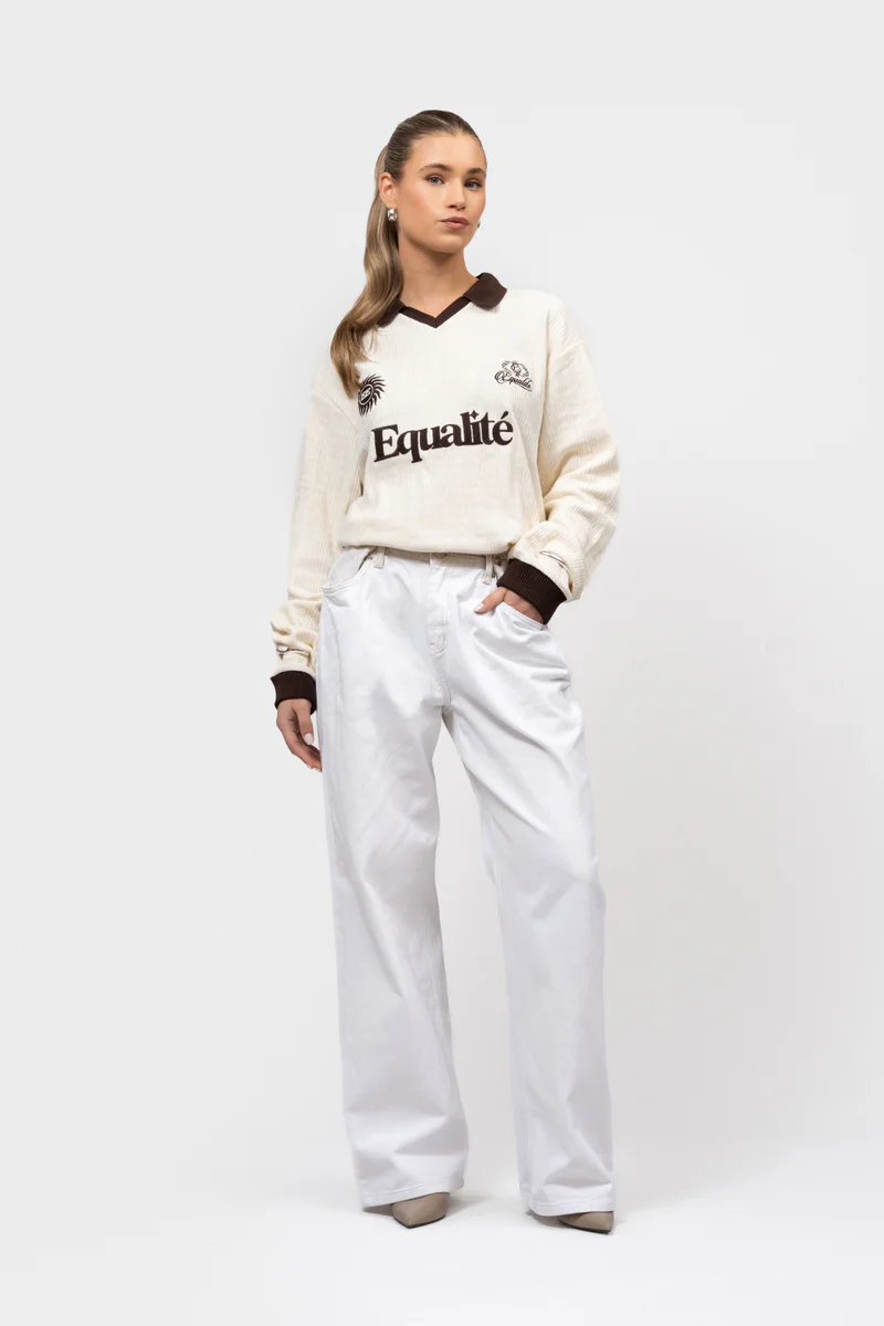 Equalité Ash Knit Longsleeve Polo Dames Gebroken Wit