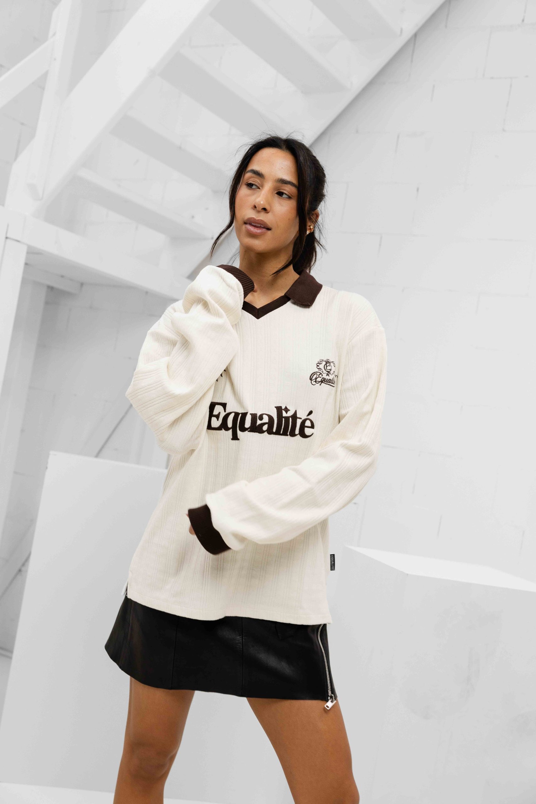 De Equalité Ash Knit Longsleeve Polo voor dames in de kleur gebroken wit is een must-have voor jouw lente/zomer garderobe. Deze longsleeve polo heeft een oversized pasvorm en lange mouwen, perfect voor een casual en comfortabele look. De kraag en logoprint geven de polo een trendy uitstraling. Met geen sluiting en geen zakken is dit kledingstuk gemakkelijk te combineren met verschillende outfits. Kies voor stijl en comfort met de Equalité Ash Knit Longsleeve Polo!