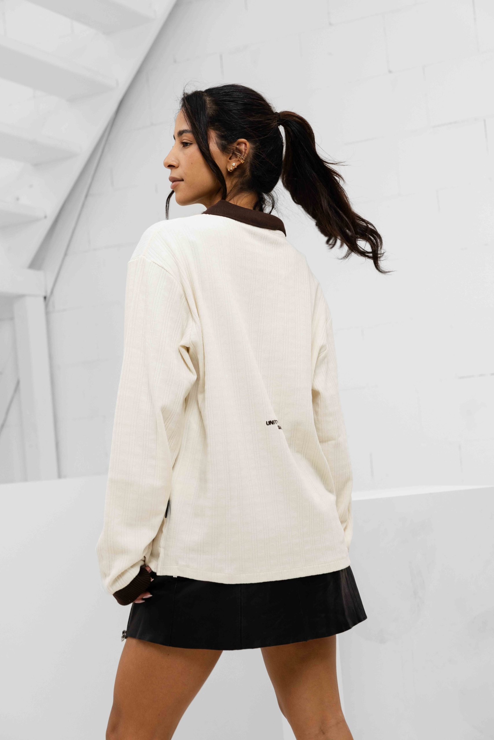 Ash Knit Longsleeve Polo Dames Gebroken Wit
