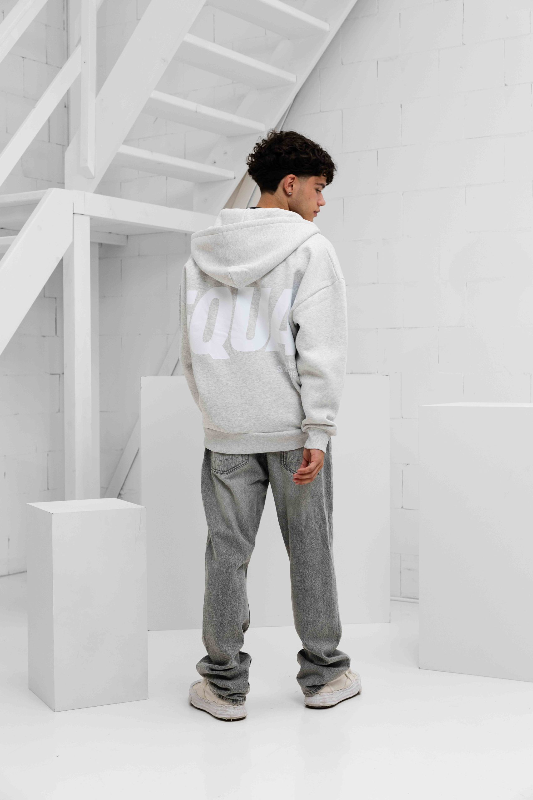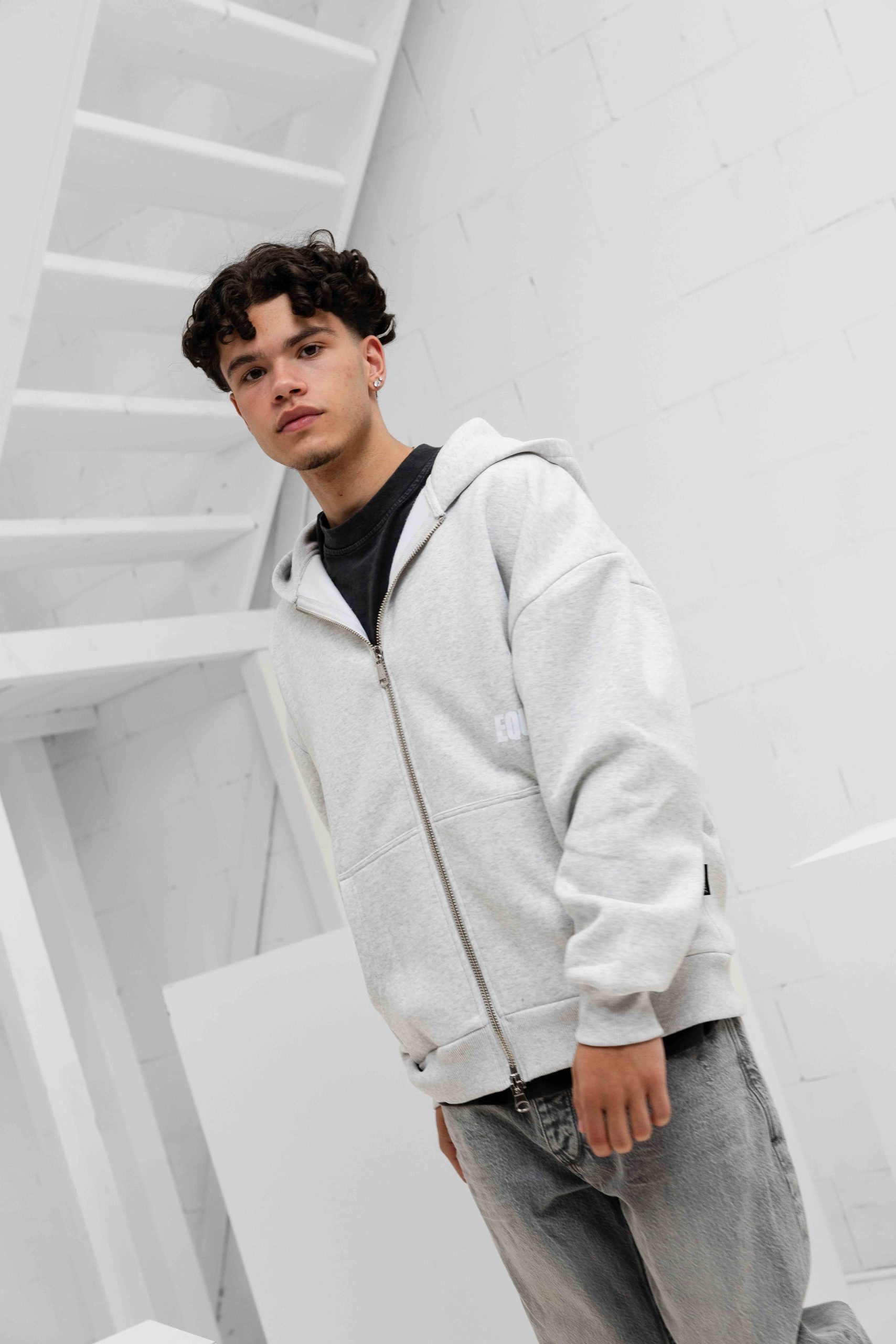 Elia Oversized Full Zip Hoodie Heren Lichtgrijs