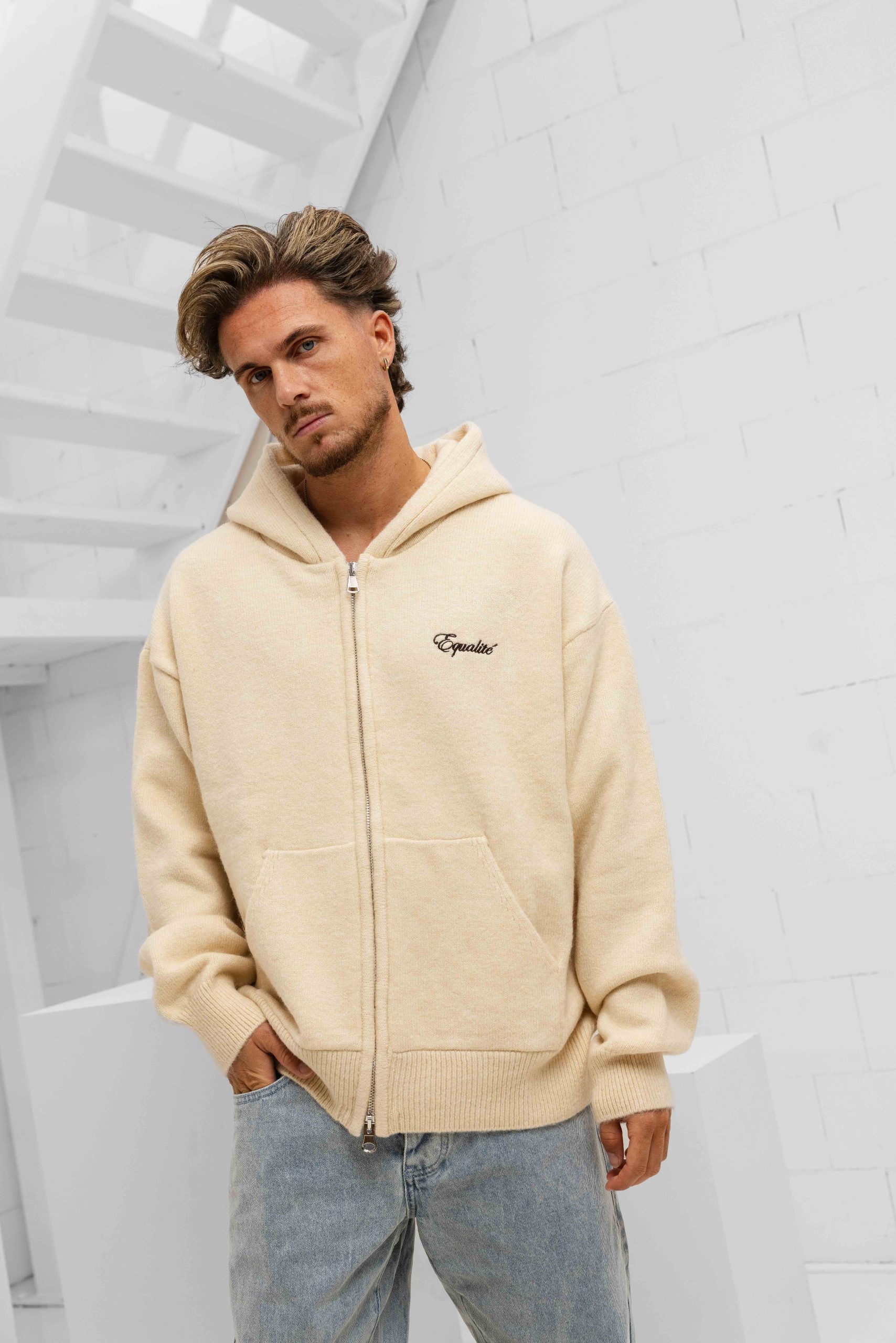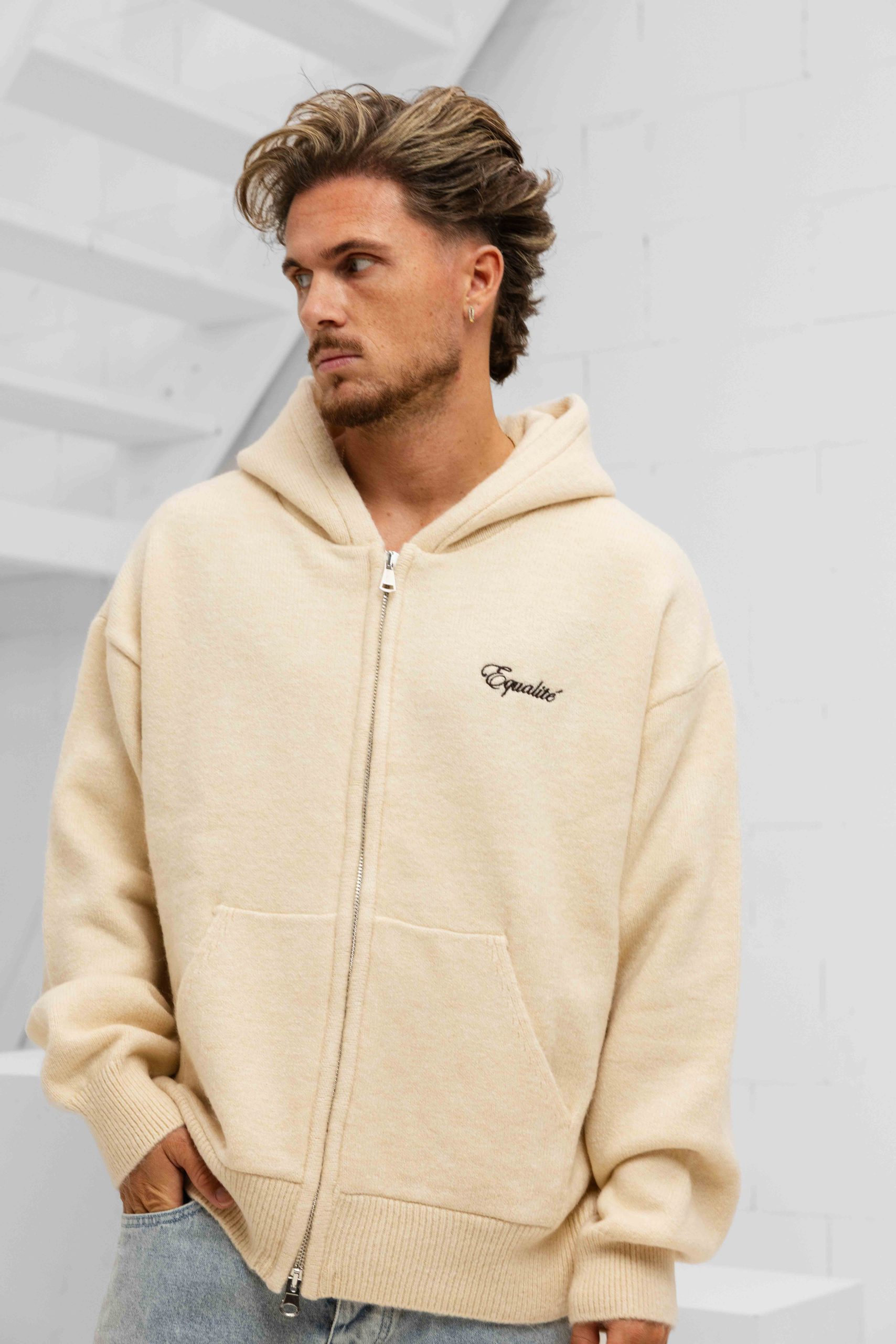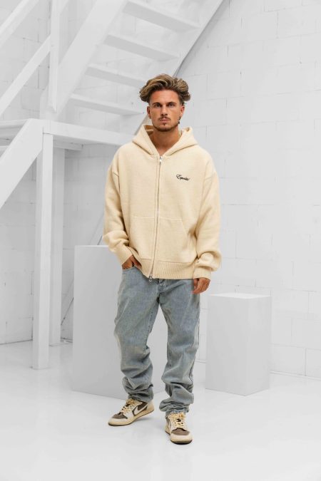 Heren > Equalité Heren > Equalité Fluffy Knit Oversized Full Zip Hoodie Heren Gebroken Wit