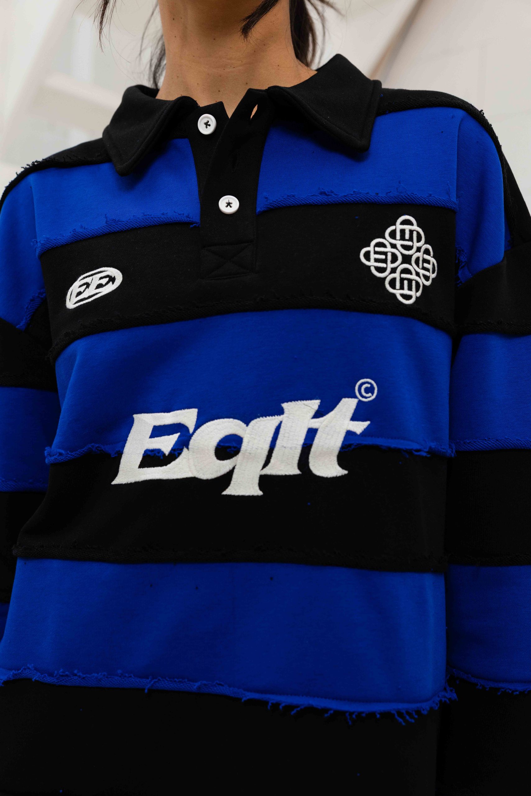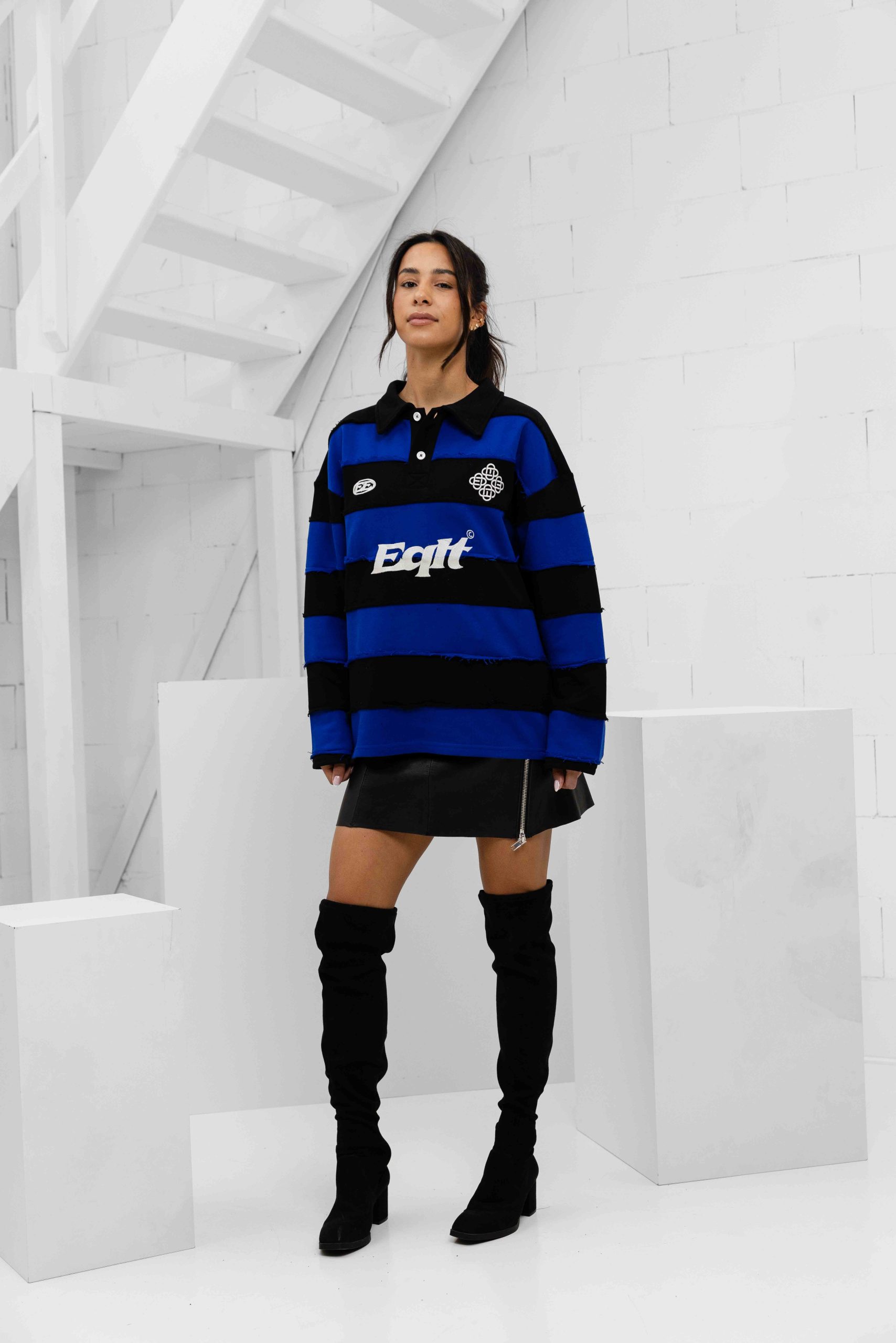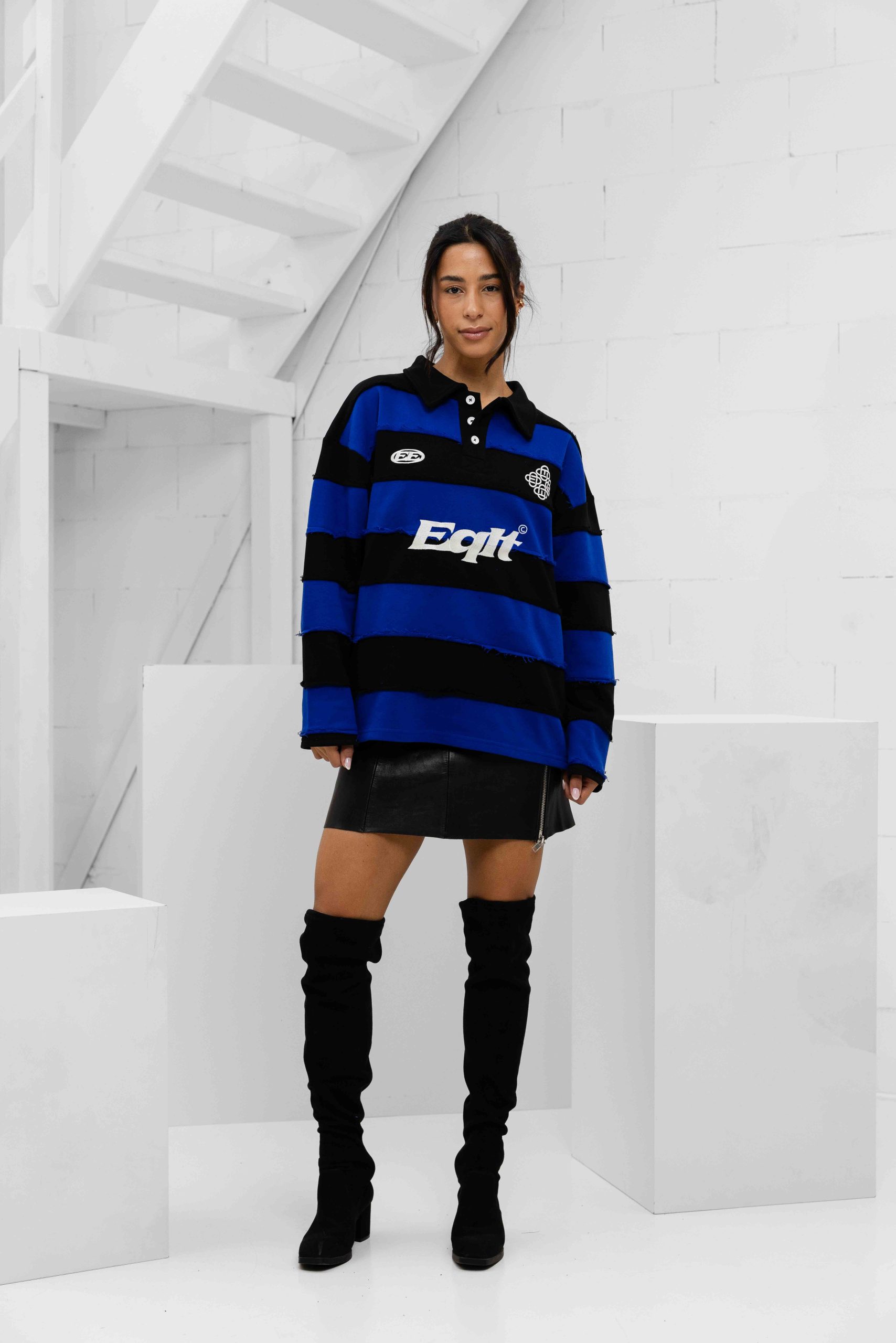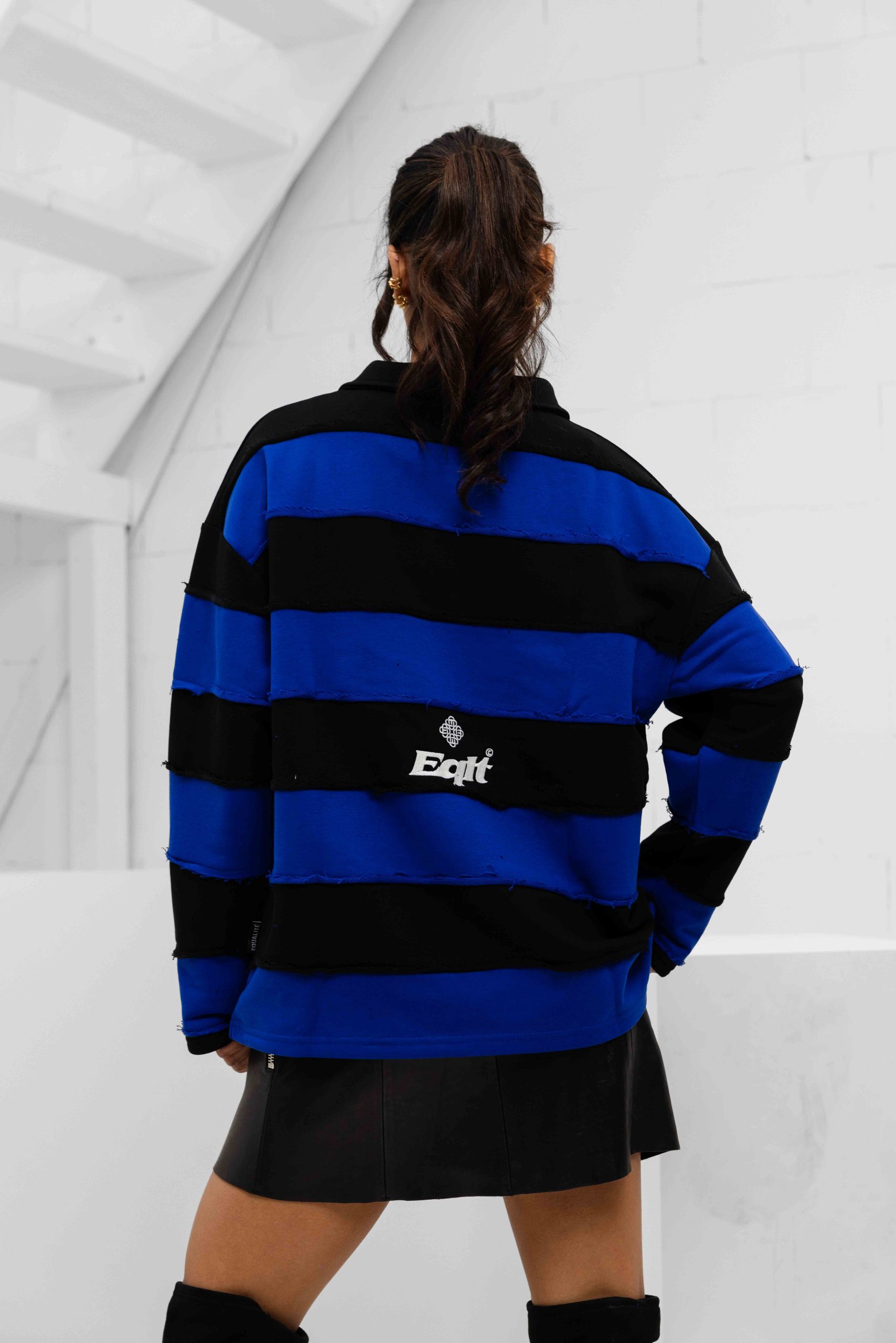 De Equalité Stripe Jersey Polo voor dames is een must-have item voor het komende herfst- en winterseizoen. Deze longsleeve polo heeft een kraag en een oversized pasvorm voor een comfortabele en trendy uitstraling. De polo is gemaakt van een mix van 70% katoen en 30% polyester, waardoor hij zacht aanvoelt en duurzaam is. De zwarte kleur met blauwe strepen geeft de polo een klassieke uitstraling, terwijl het effen patroon zorgt voor een tijdloze look. Met lange mouwen en geen sluiting is deze polo perfect voor casual en formele gelegenheden. Upgrade je kledingkast met de Equalité Stripe Jersey Polo en voeg een vleugje stijl toe aan je outfits!