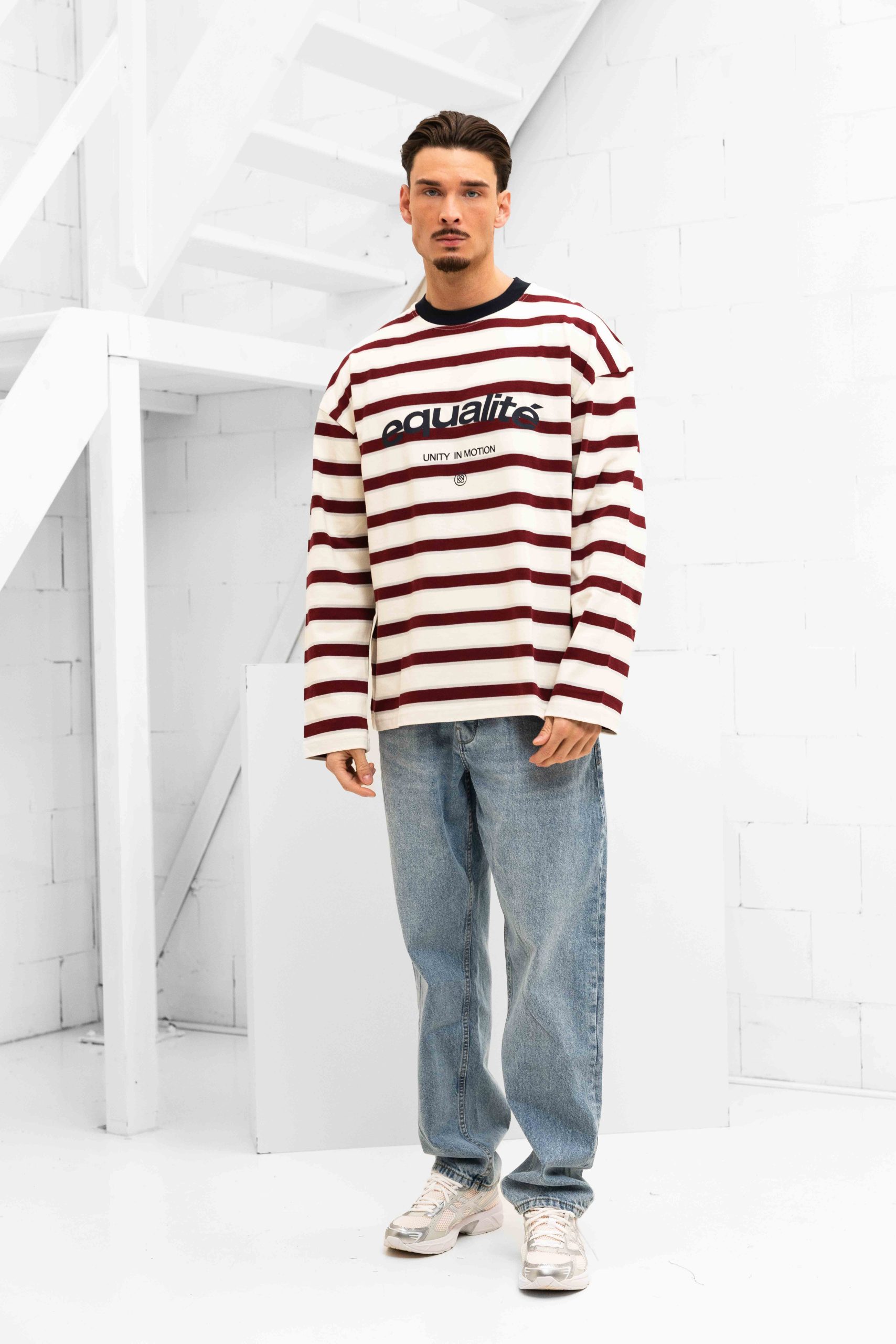 Equalité Striped Celeste Longsleeve T-Shirt Heren Gebroken Wit/Rood