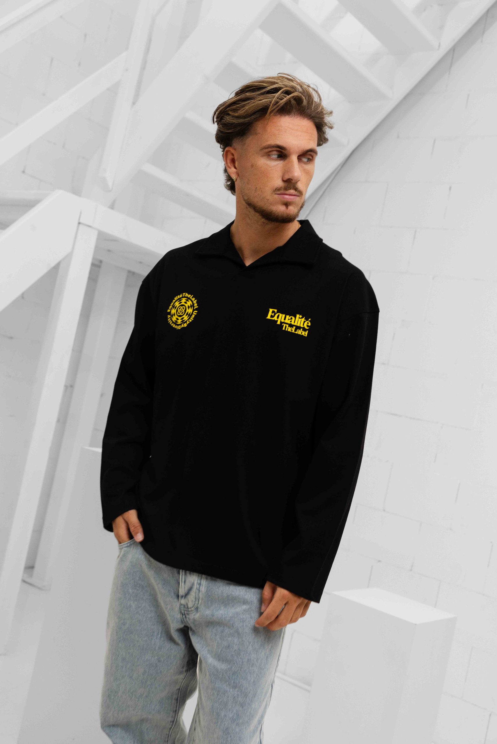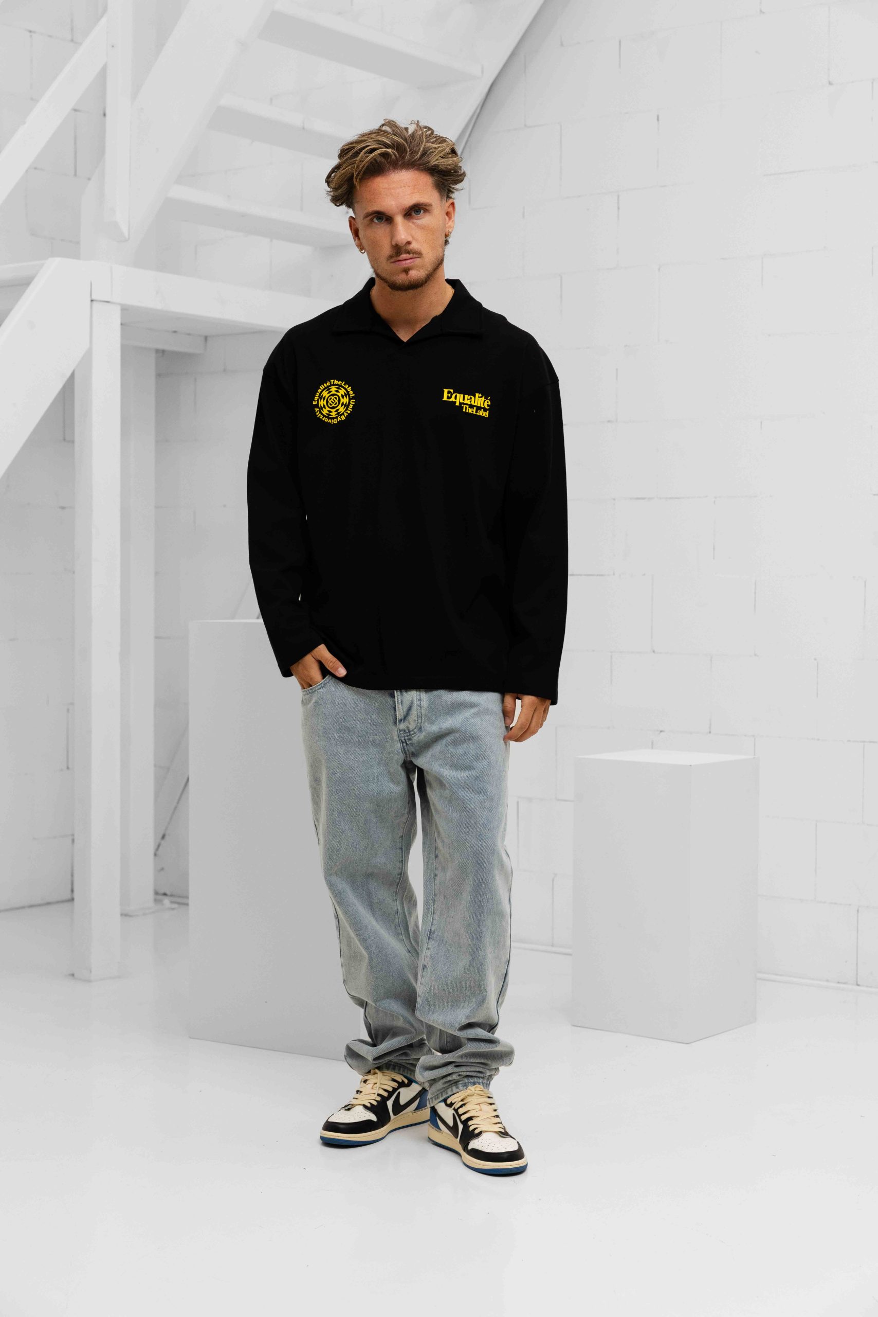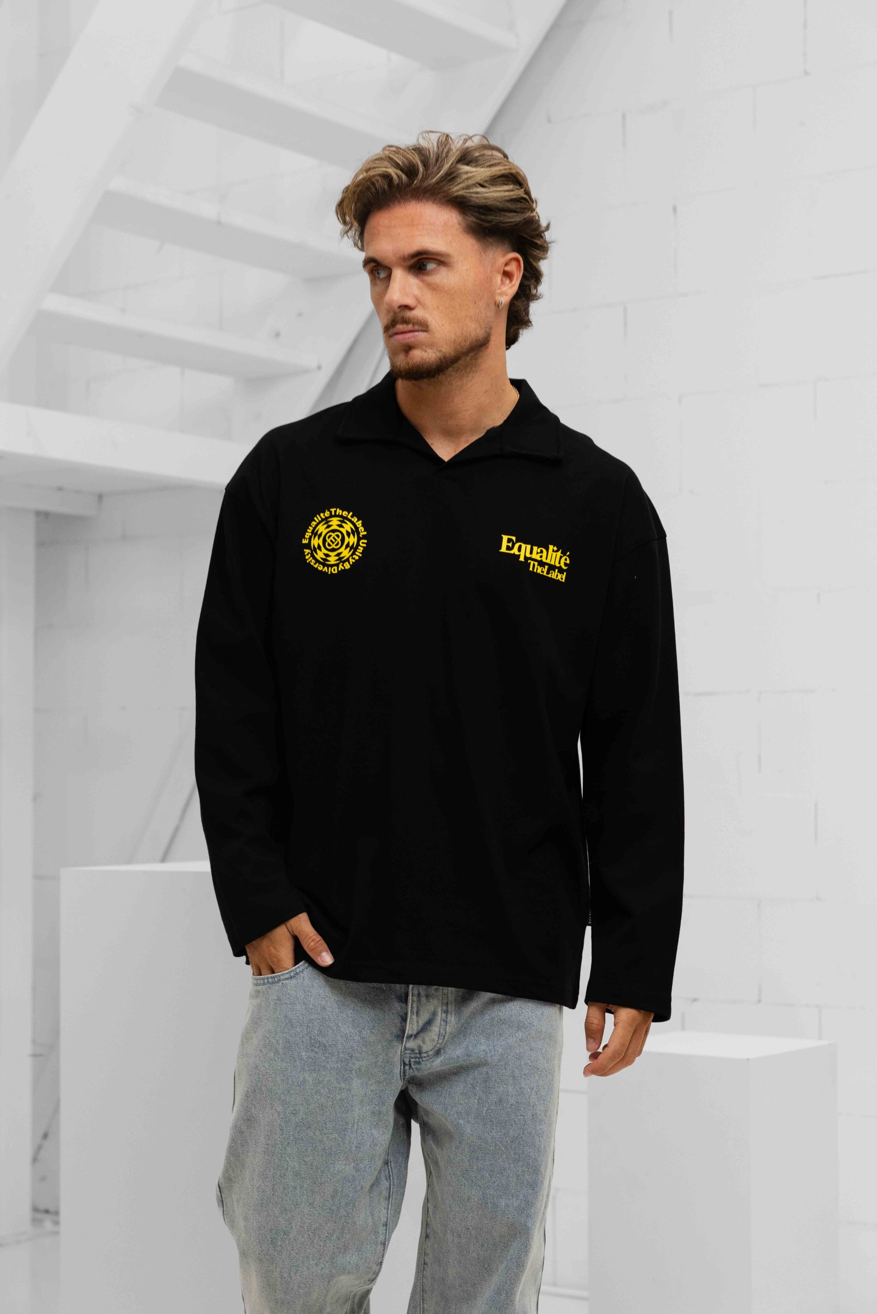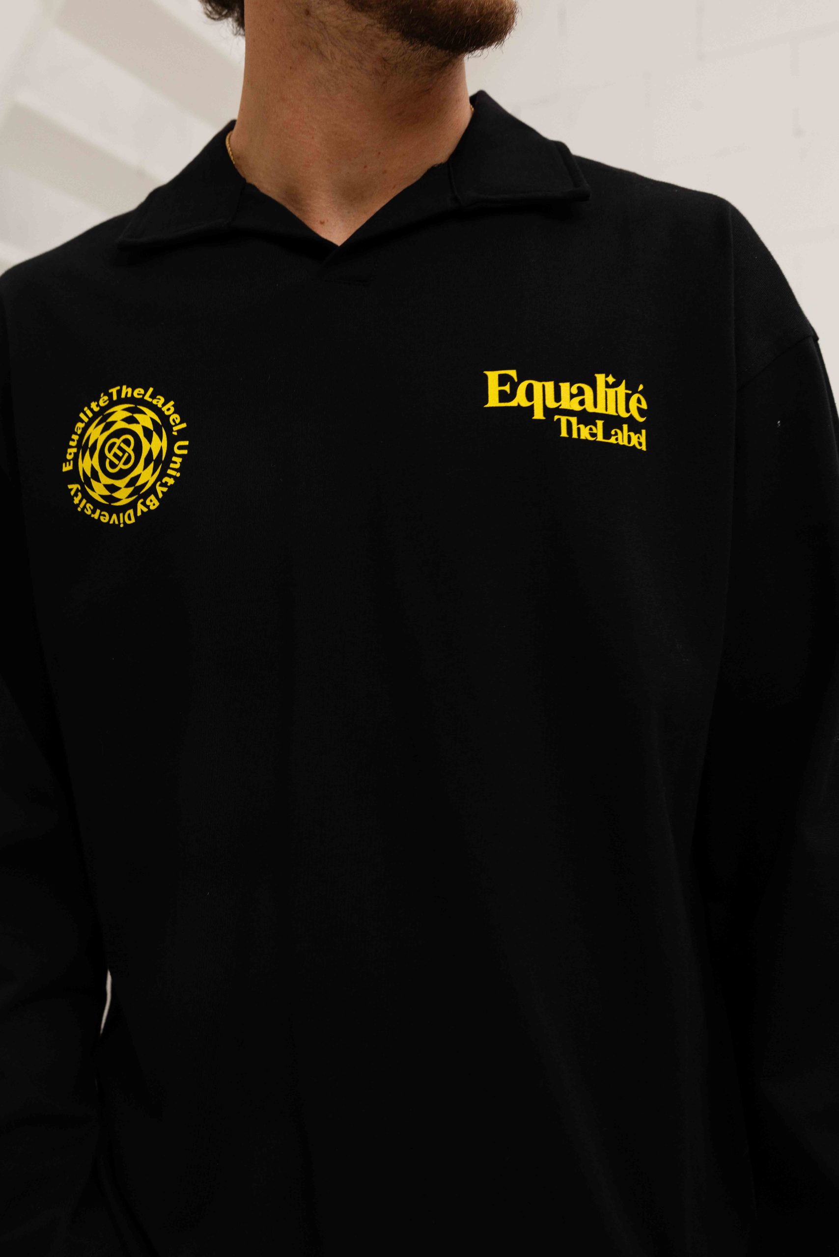 De Equalité Verity Longsleeve Polo voor heren is een must-have item voor de lente/zomer collectie. Deze zwarte polo met kraag is gemaakt van 100% katoen, waardoor het comfortabel en ademend is. De lange mouwen en normale pasvorm zorgen voor een perfecte fit. De polo heeft een effen ontwerp met een opvallende gele backprint, wat zorgt voor een trendy uitstraling. Met geen sluiting en geen zakken is deze polo perfect voor een casual en stijlvolle look. Met het merk Equalité ben je verzekerd van kwaliteit en stijl.