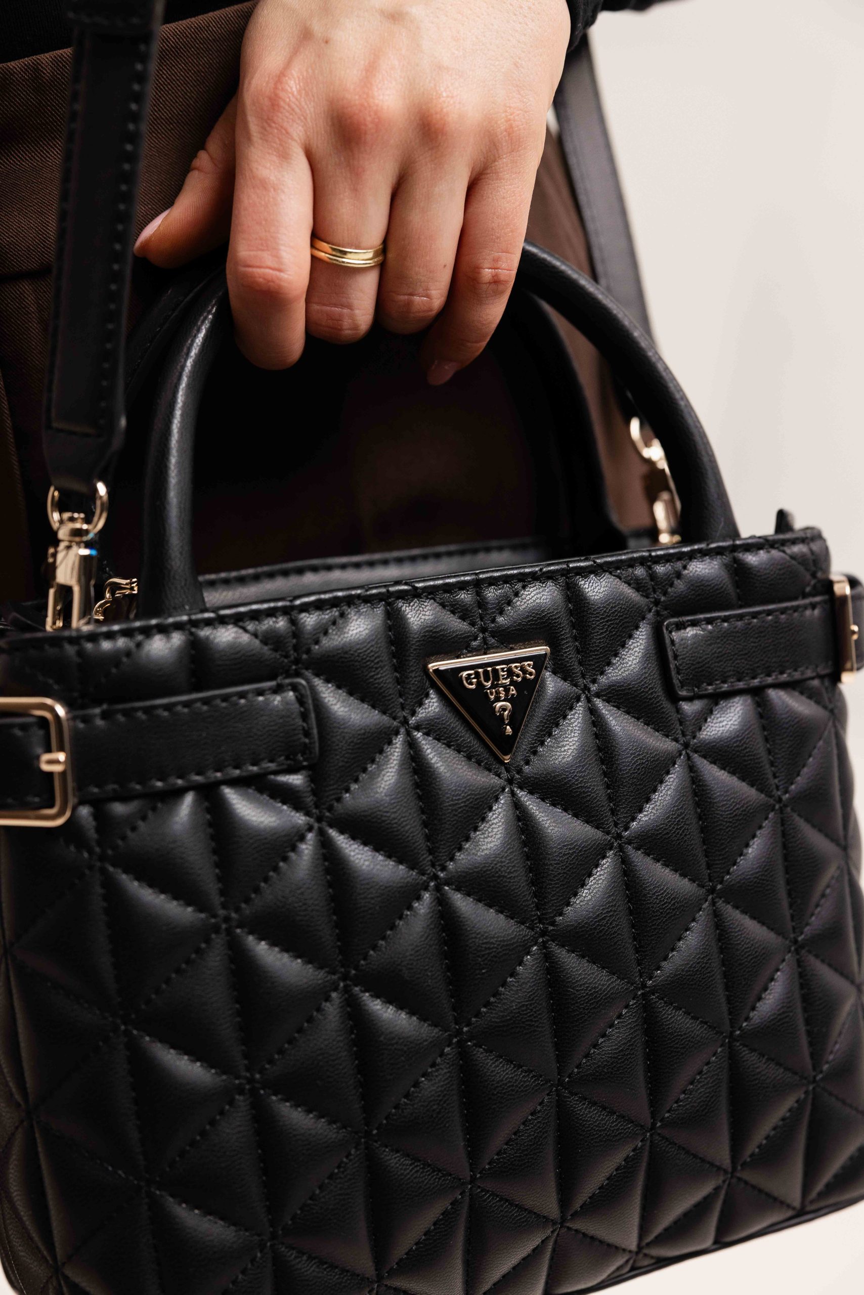 De Guess Paisleigh Quilted Mini Handtas is een tijdloze toevoeging aan je collectie. Deze zwarte handtas is perfect voor elke gelegenheid en past bij elke outfit. Het elegante quilted patroon en de subtiele logoprint geven de tas een luxe uitstraling. De handtas is gemaakt van hoogwaardig 100% polyurethaan en heeft een handige ritssluiting om je spullen veilig op te bergen. Een must-have voor elke moderne vrouw!