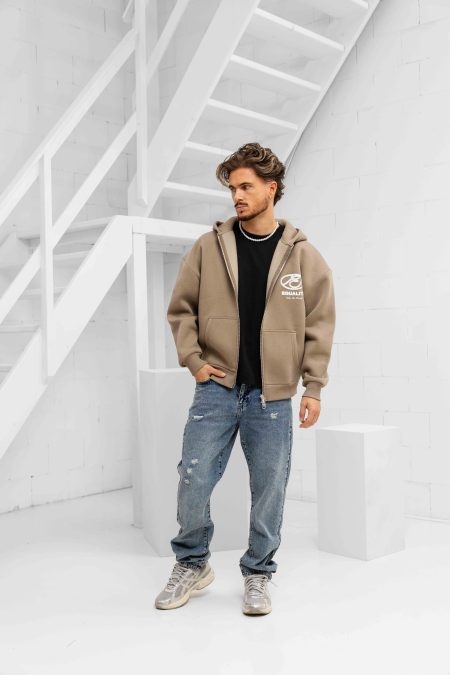 Arid Oversized Full Zip Hoodie Heren Beige