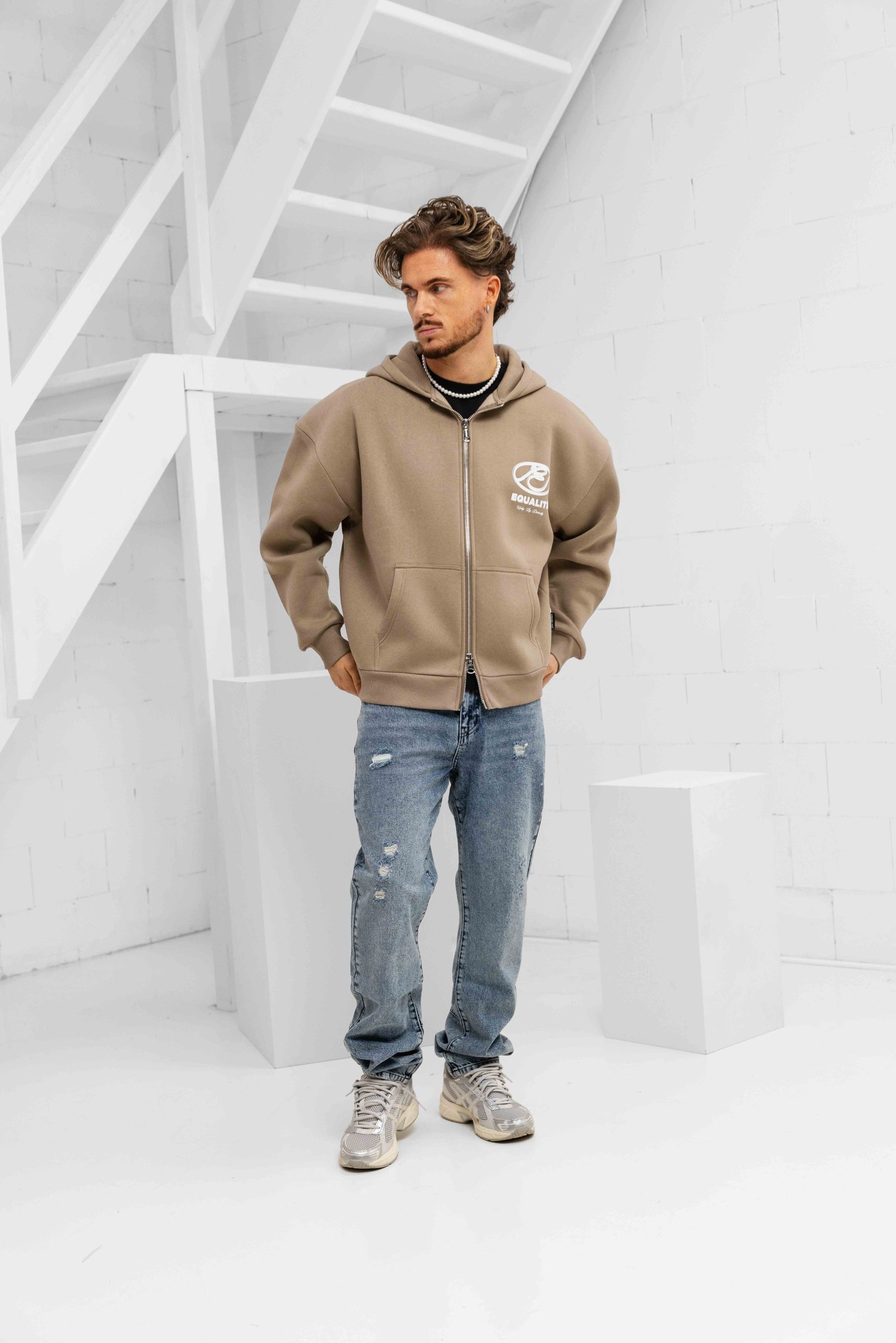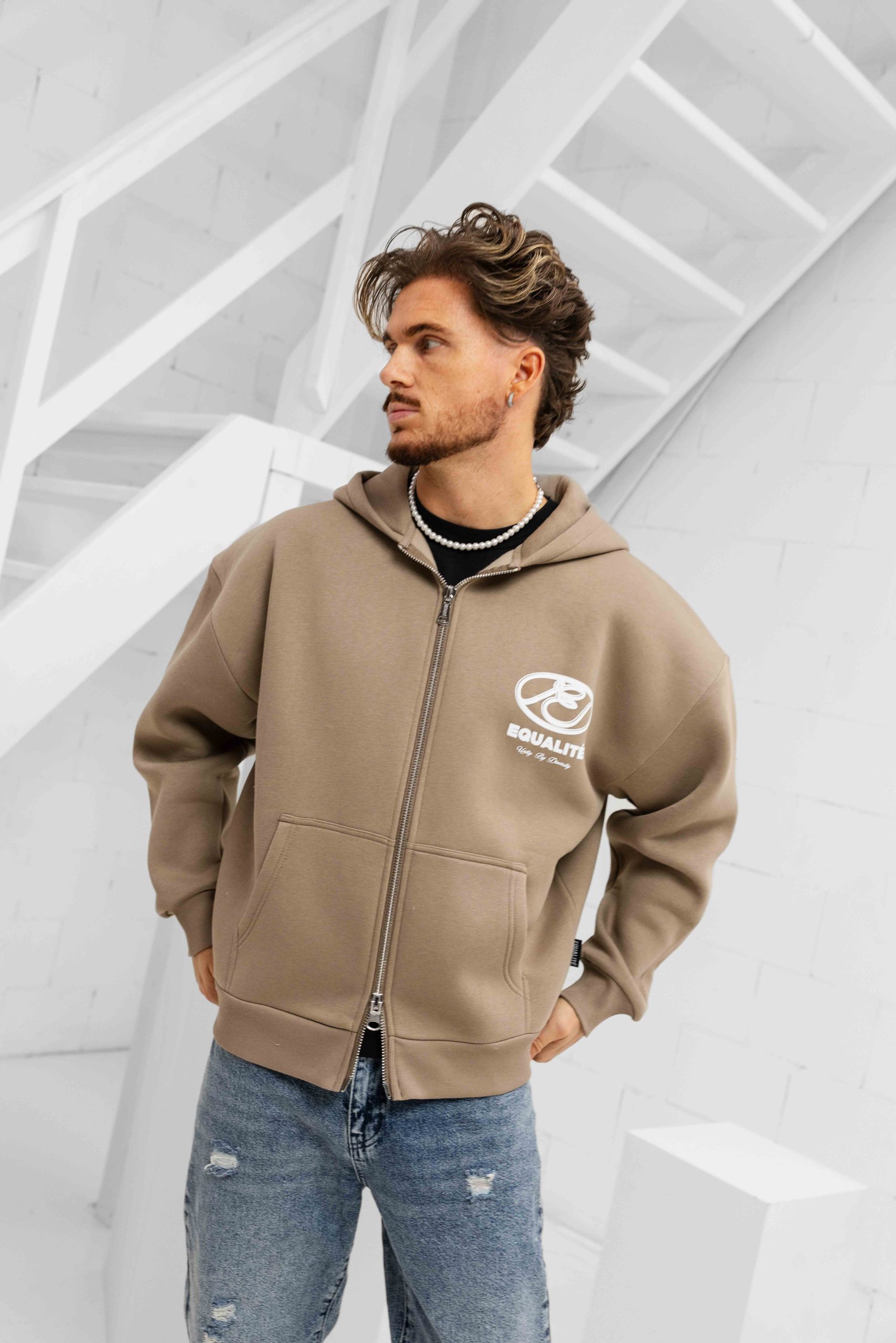 Equalité Arid Oversized Full Zip Hoodie Heren Beige
