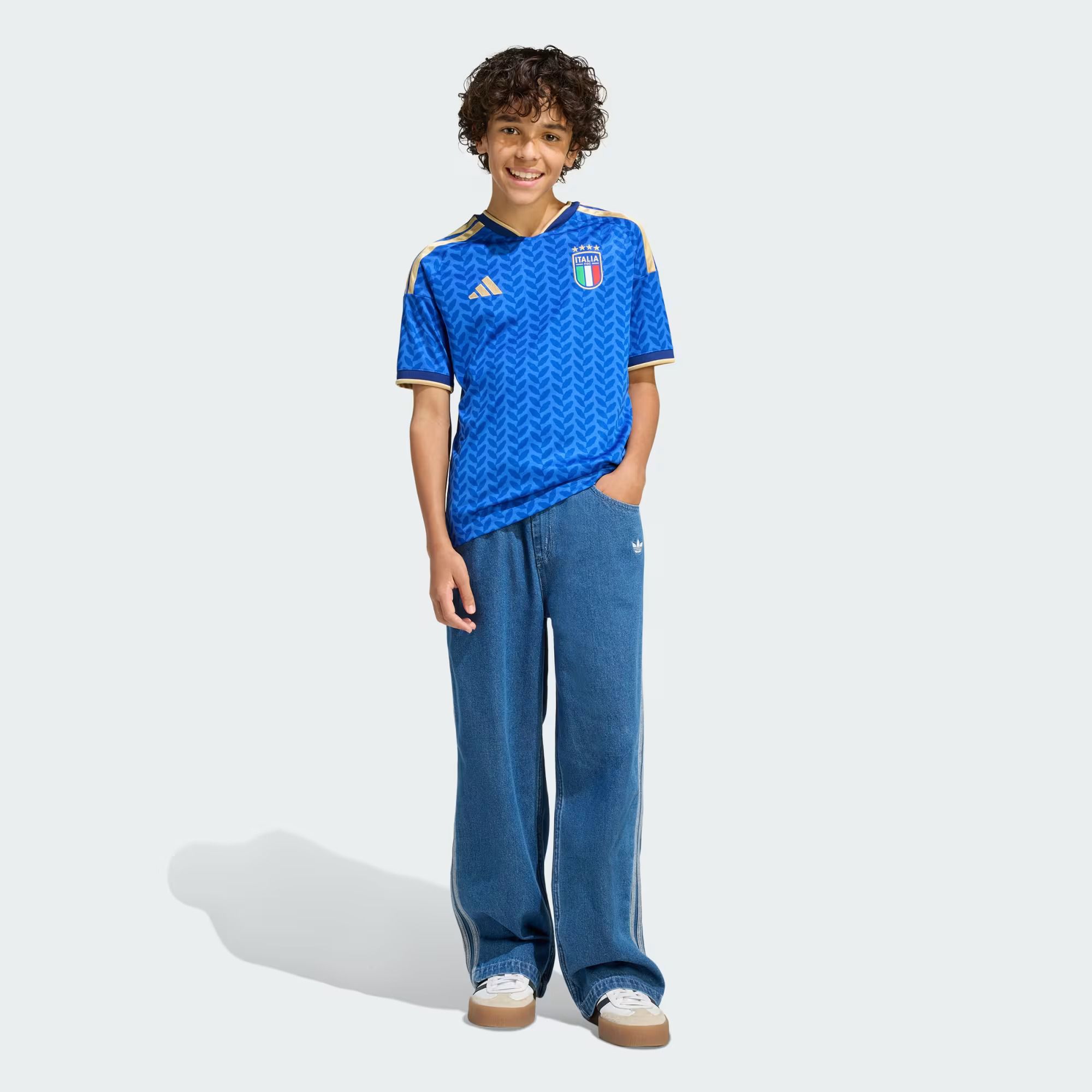 Het Italië Shirt Thuis Junior 2026/2028 is onderdeel van de Herfst/Winter collectie en speciaal ontworpen voor heren. Dit voetbalshirt heeft een ronde hals, korte mouwen en een slimfit pasvorm. Het shirt is gemaakt van 100% gerecycled polyester in een opvallende blauwe kleur. Het patroon is effen met een subtiele logoprint van het merk Adidas. Het shirt heeft geen sluiting en geen zakken, waardoor het perfect is voor op het voetbalveld. Met dit comfortabele en stijlvolle shirt ben jij helemaal klaar om te schitteren op het veld!