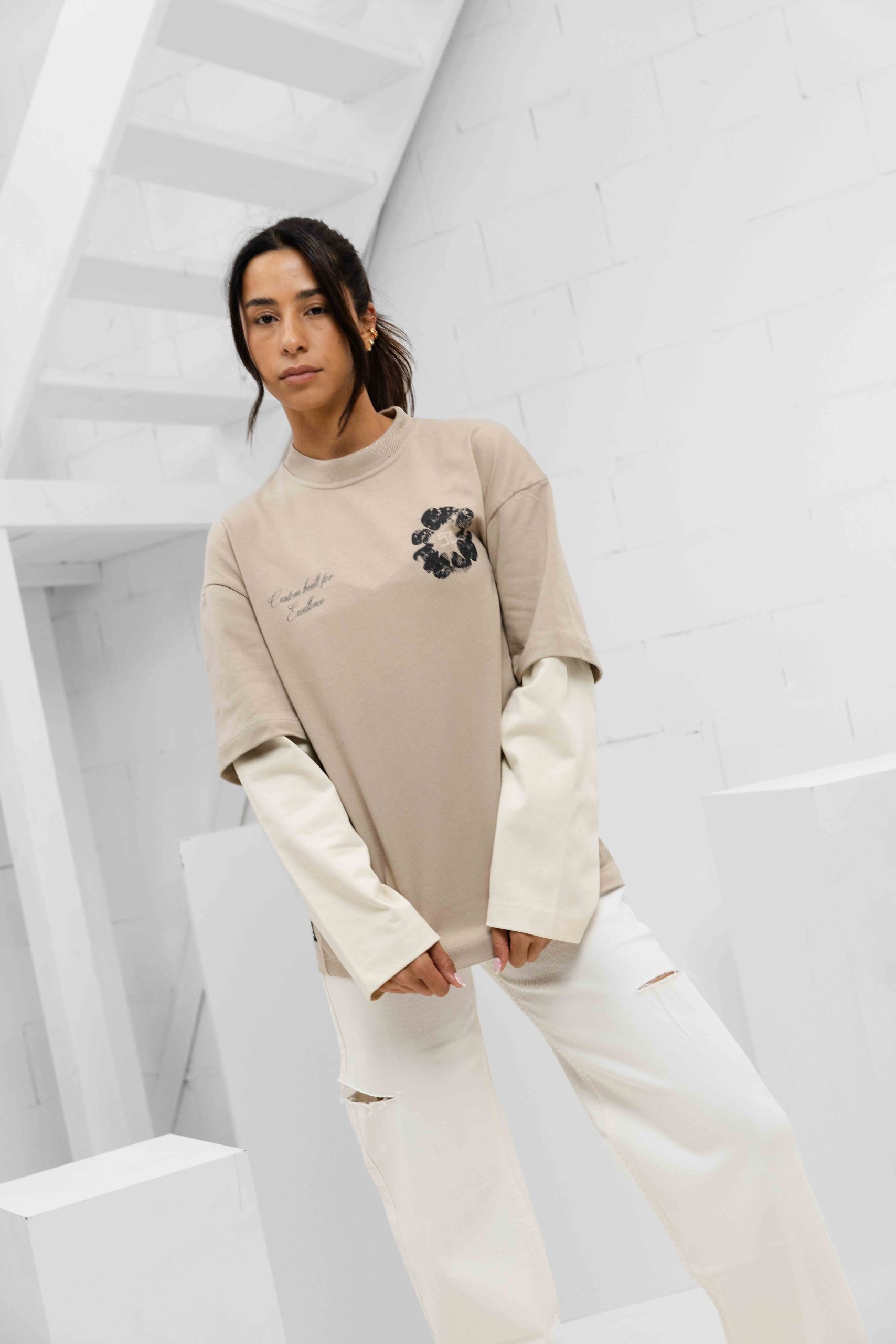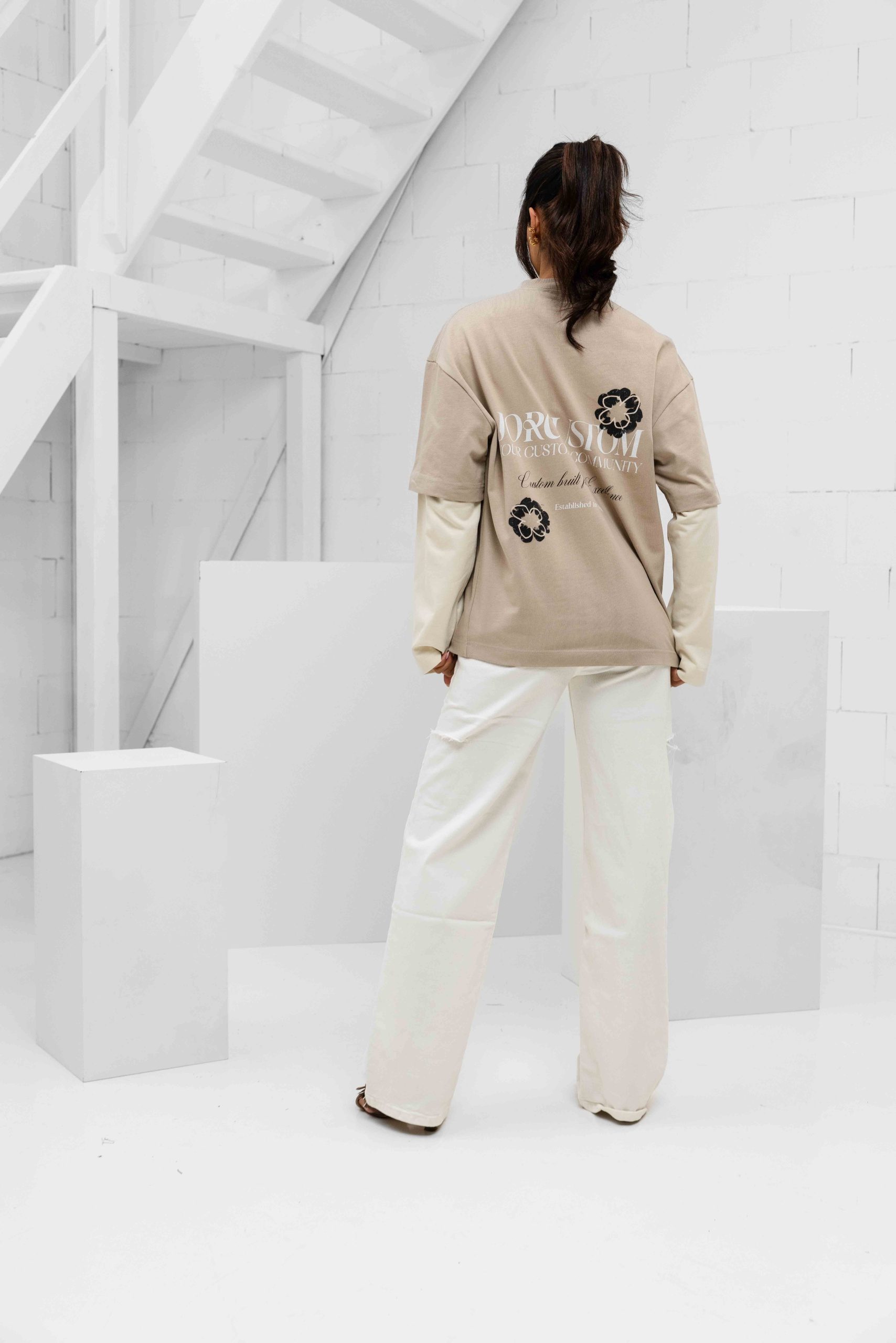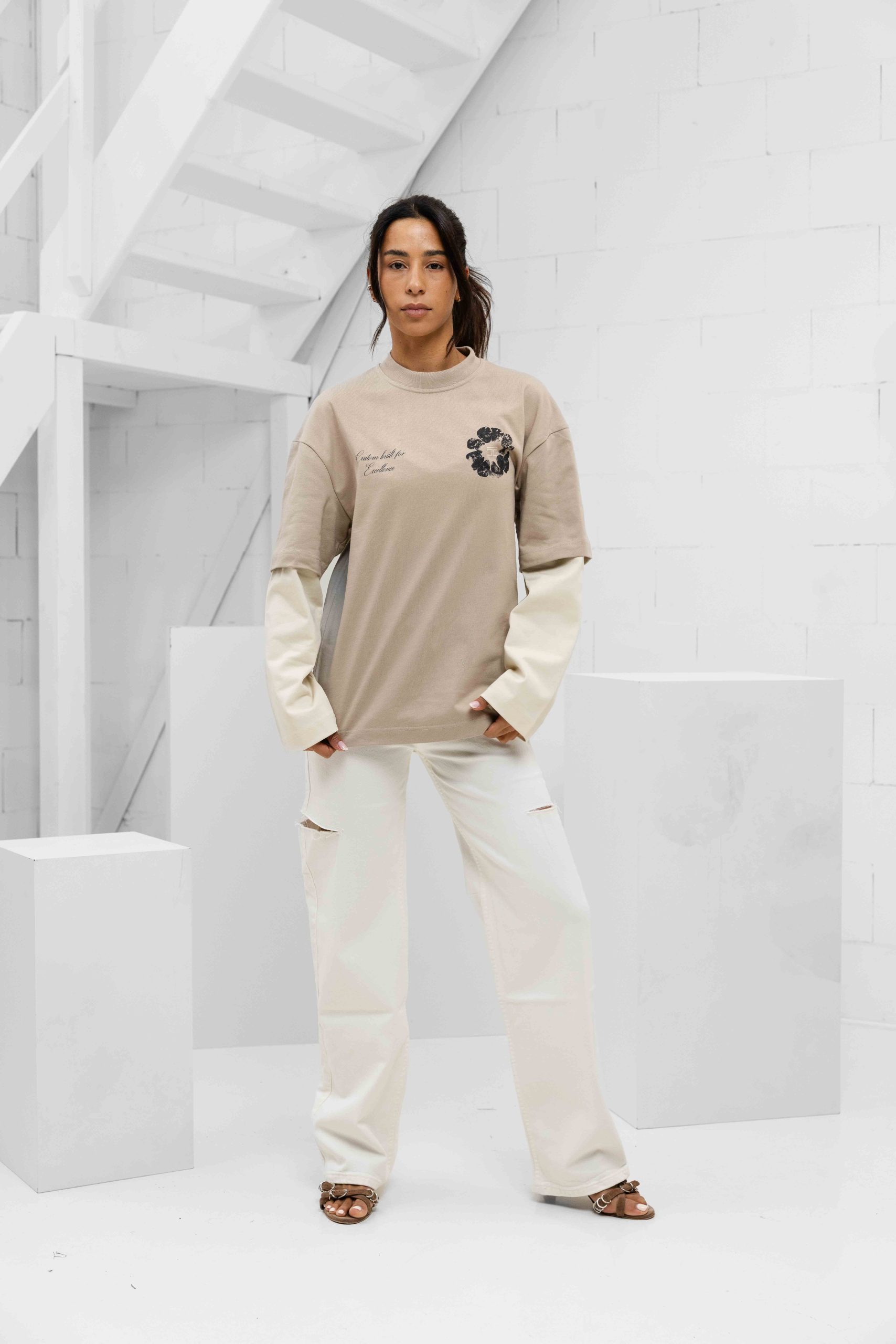 Jorcustom Flowers Double Layered Longsleeve T-Shirt Dames Taupe/Beige