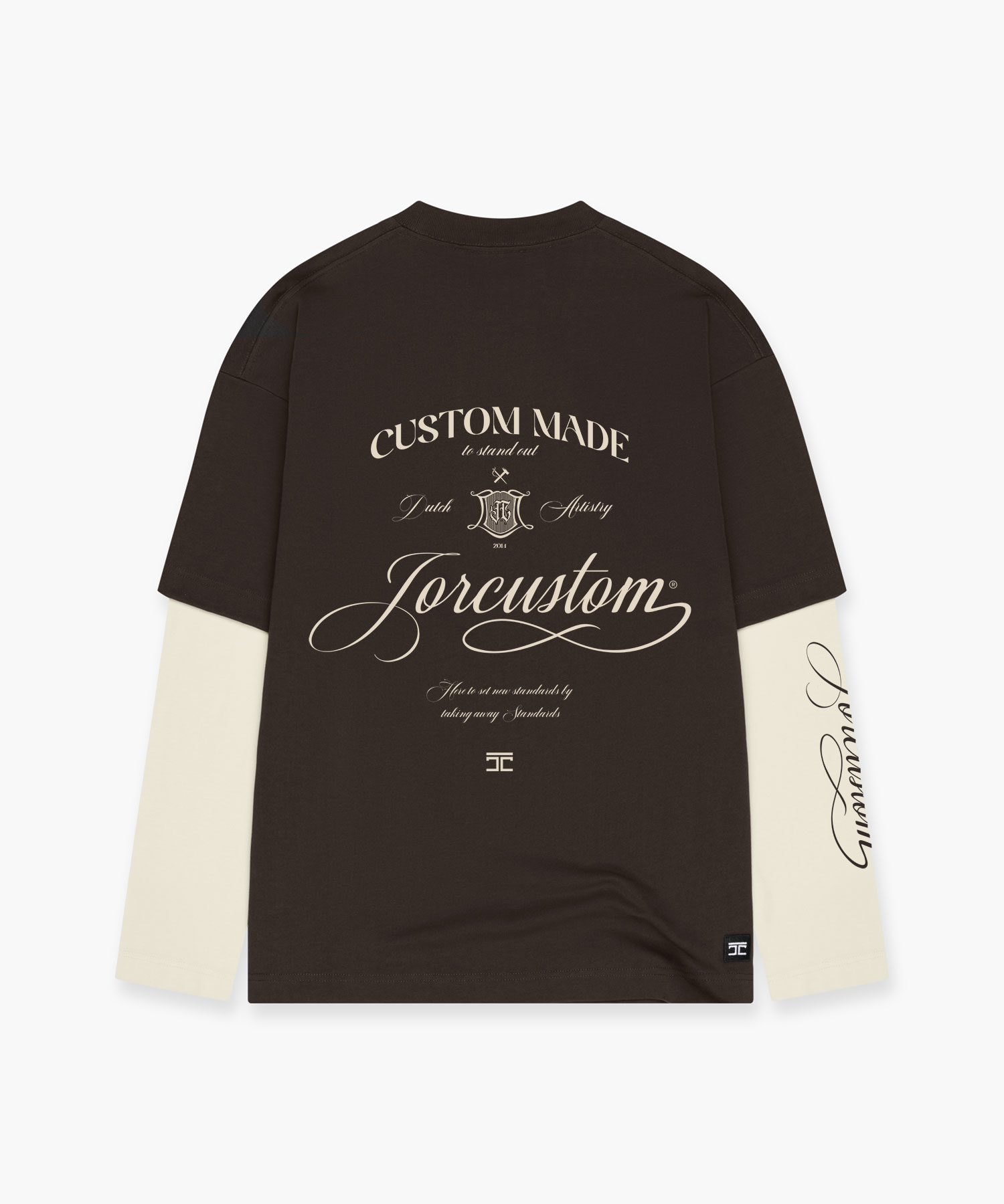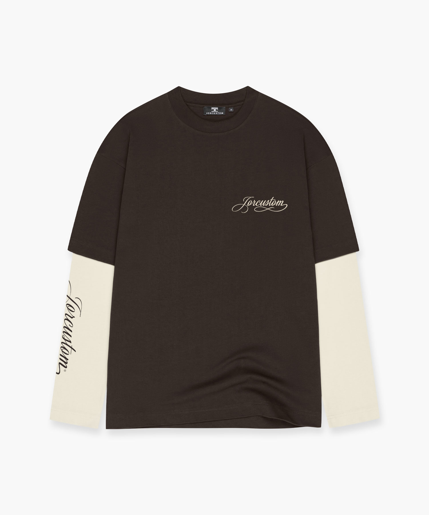 Jorcustom Handscript Double Layered Longsleeve T-Shirt Heren Bruin/Beige