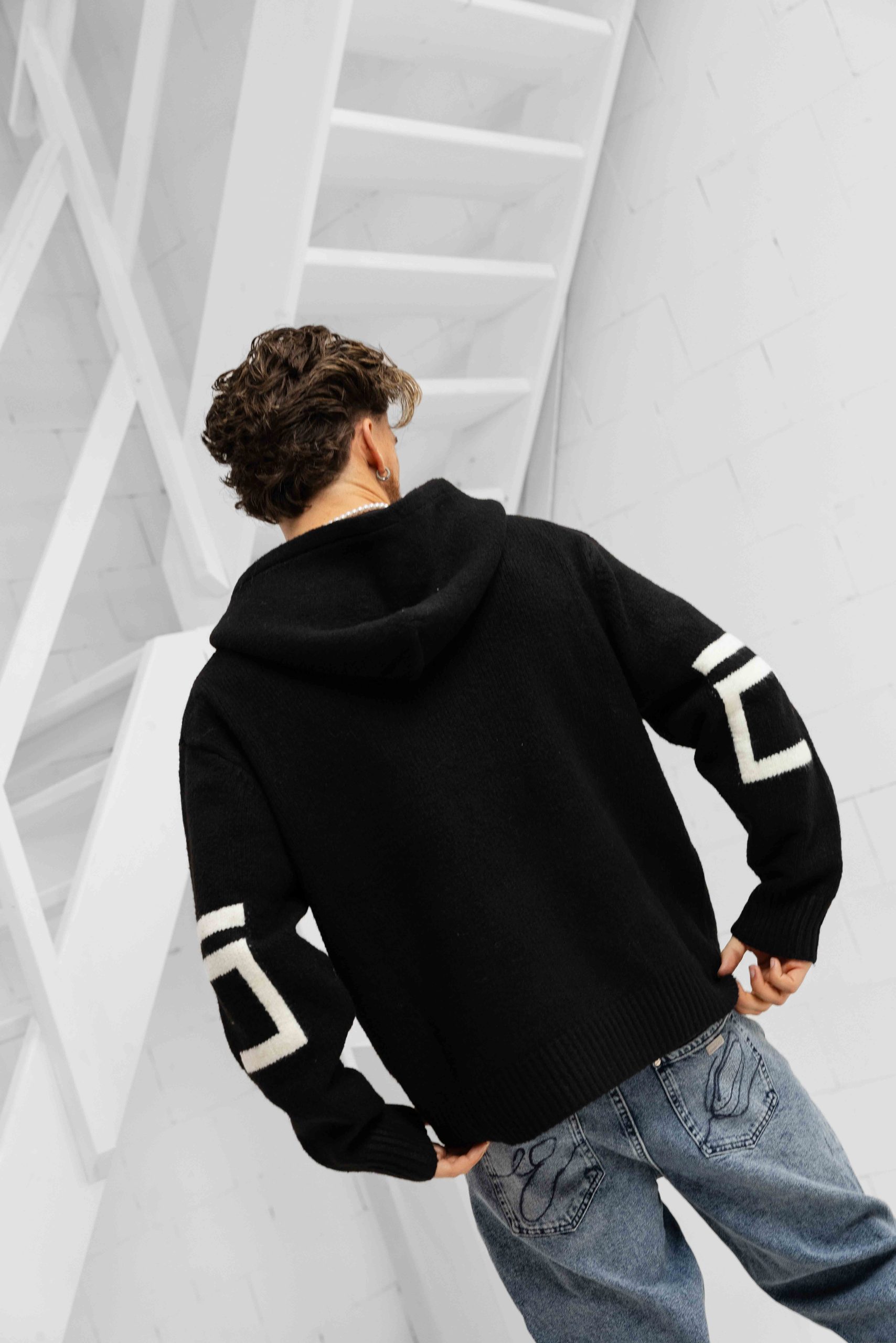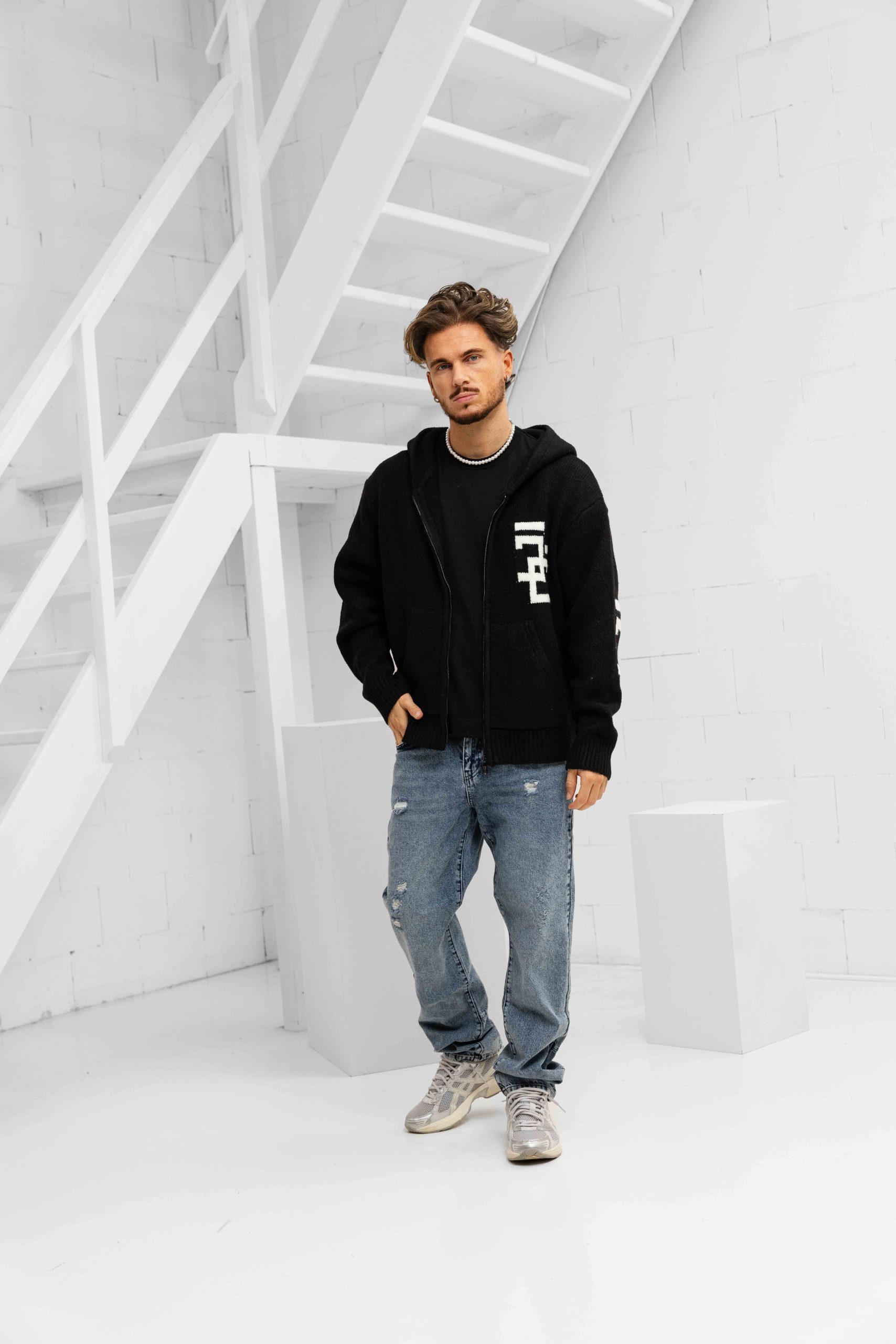 Jorcustom Splittedicon Knit Zipped Hoodie Heren Zwart
