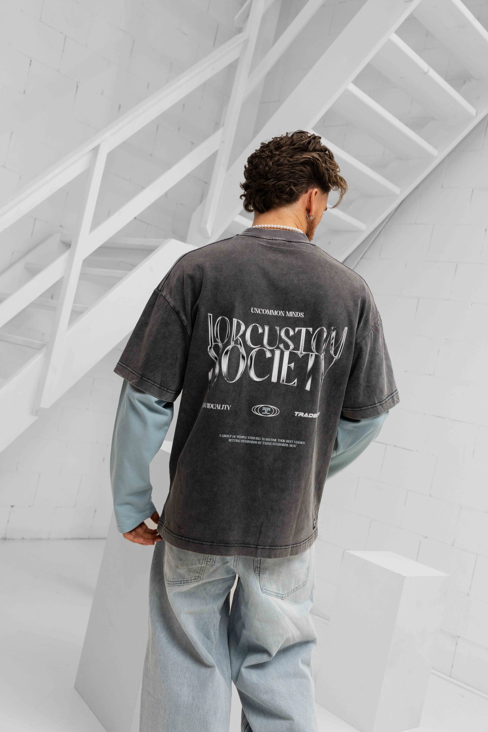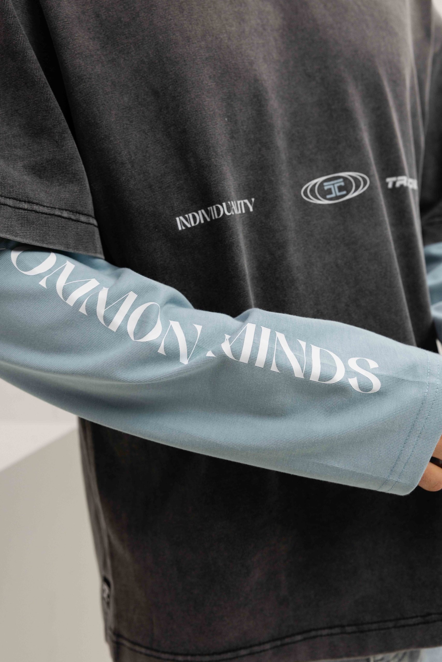 Jorcustom Uncommon Minds Double Layered Longsleeve T-Shirt Heren Donkergrijs/Lichtblauw
