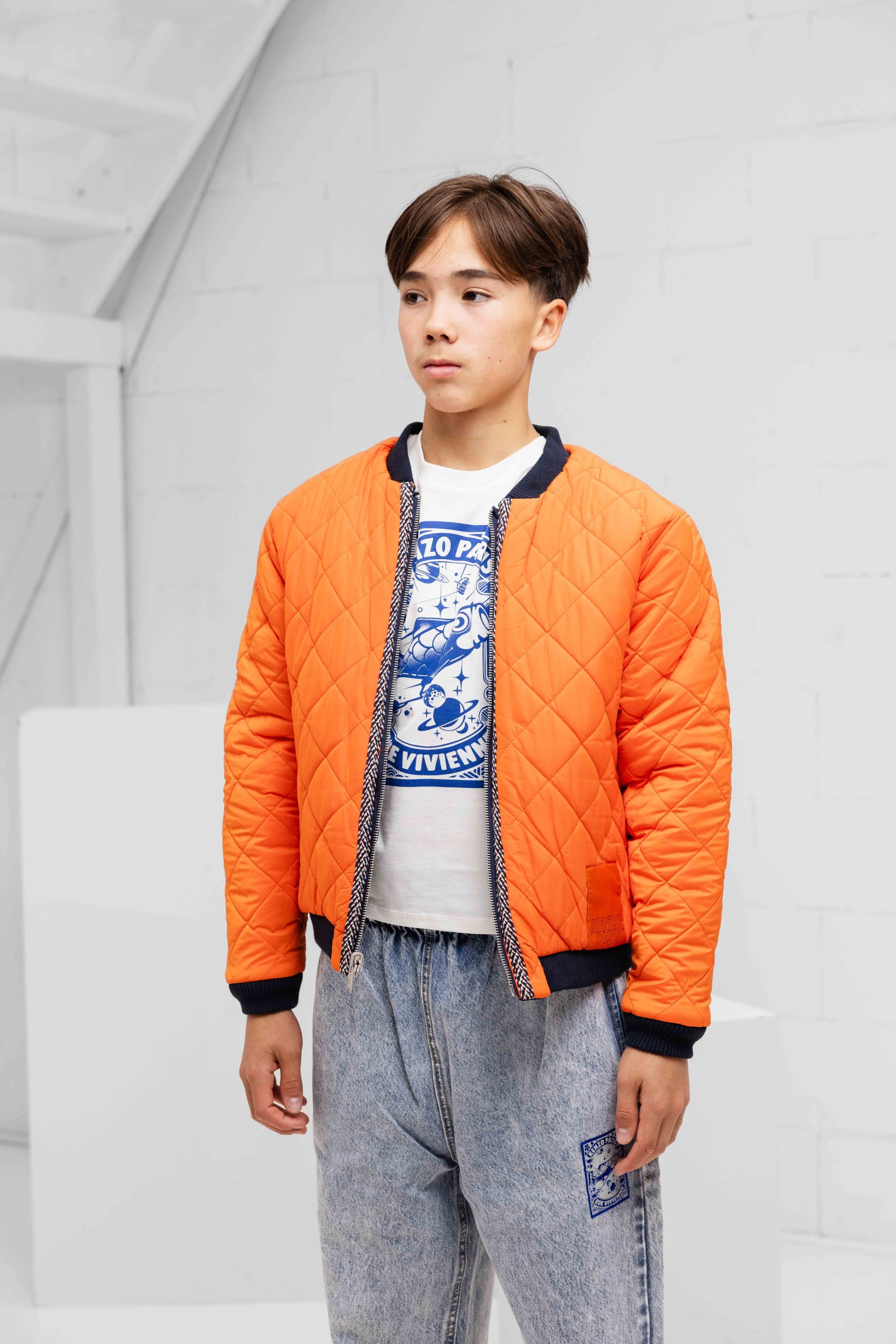 De Kenzo Galaxy Embroidered Reversible Jacket Kids in donkerblauw is de perfecte winterjas voor kinderen uit de Herfst/Winter collectie. Deze stoere jas is gemaakt van 100% polyester en heeft een normale pasvorm. De jas is donkerblauw van kleur met een opvallende oranje voering en is voorzien van een kraag en lange mouwen. Het design is eenvoudig en stijlvol met een effen buitenkant en een opvallende backprint. Deze jas is niet alleen warm en comfortabel, maar ook nog eens trendy en geschikt voor zowel jongens als meisjes. Met de Kenzo Galaxy Embroidered Reversible Jacket Kids zijn kinderen helemaal klaar voor de koude winterdagen!