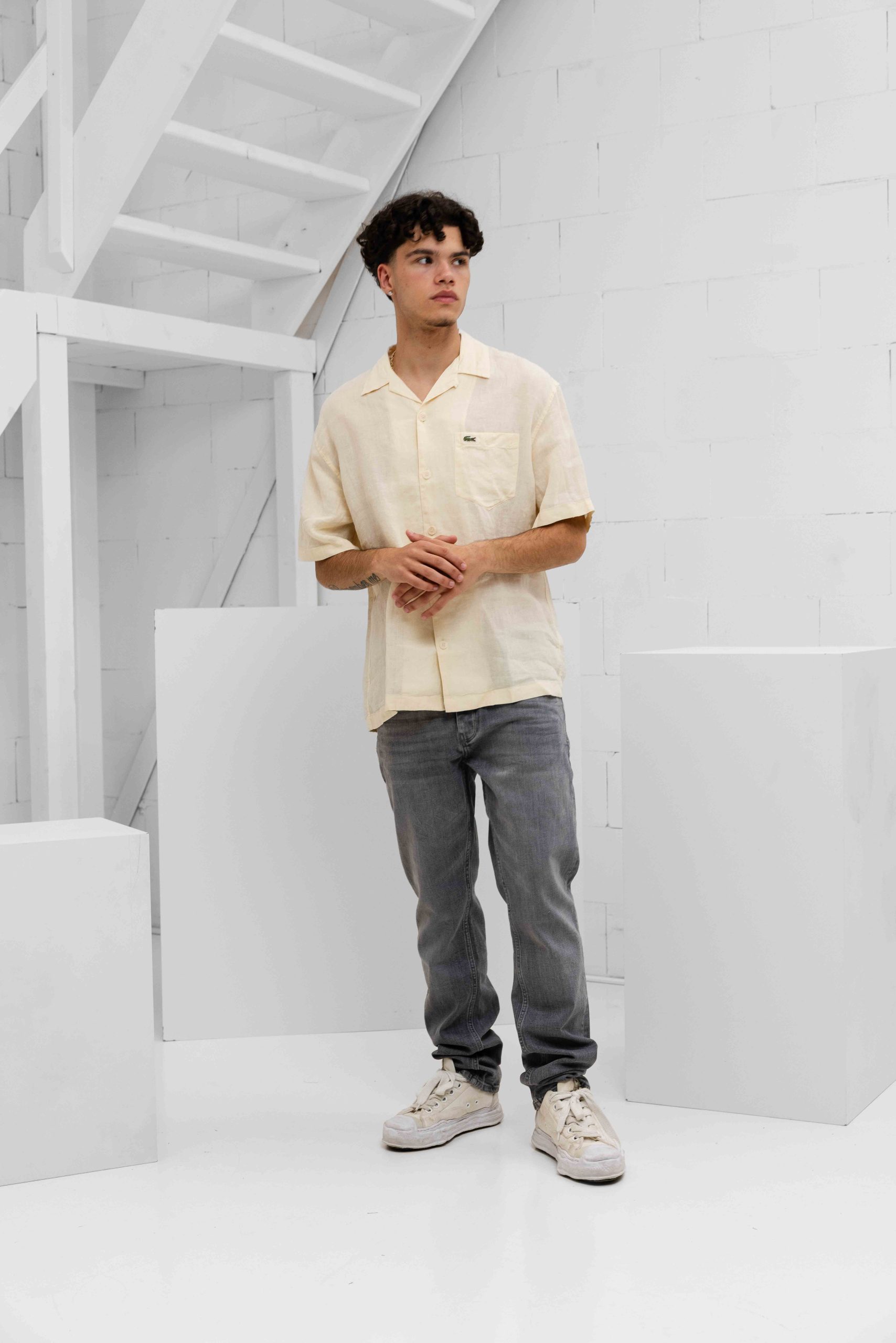 Lacoste Relaxed Fit Linnen Overhemd Heren Beige