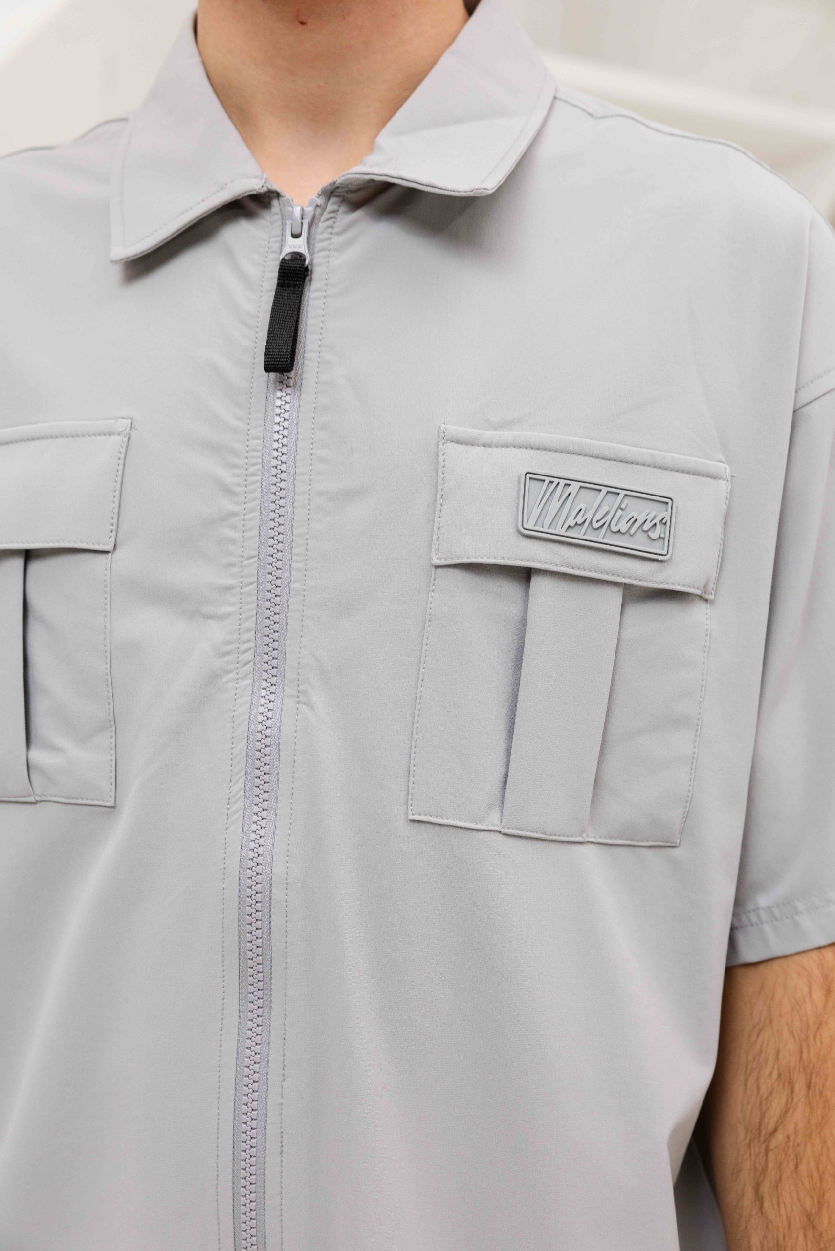 Malelions Capri Zip T-Shirt Heren Lichtgrijs