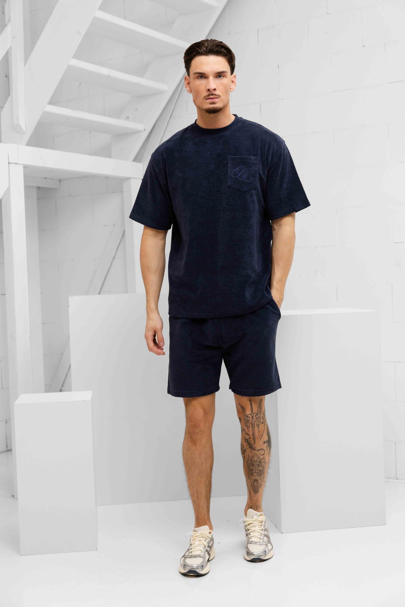 Malelions Emblem Toweling Zomerset Heren Donkerblauw