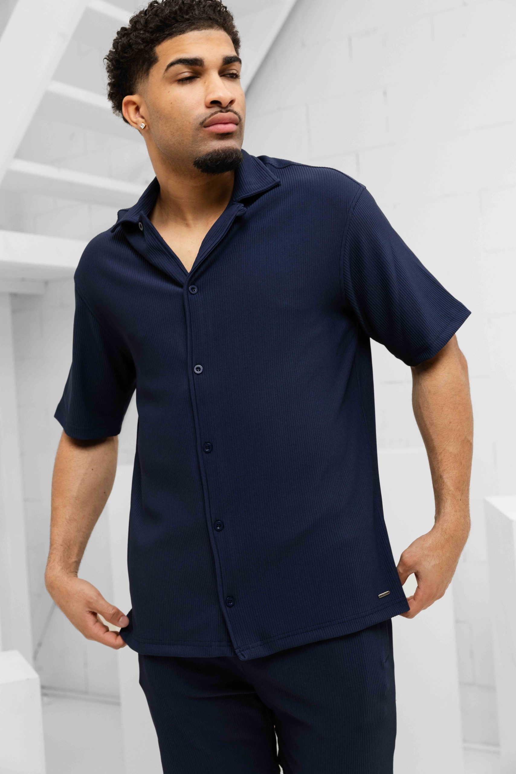 Heren > Malelions Heren > Malelions Ribbed Camp Collar Zomerset Heren Donkerblauw