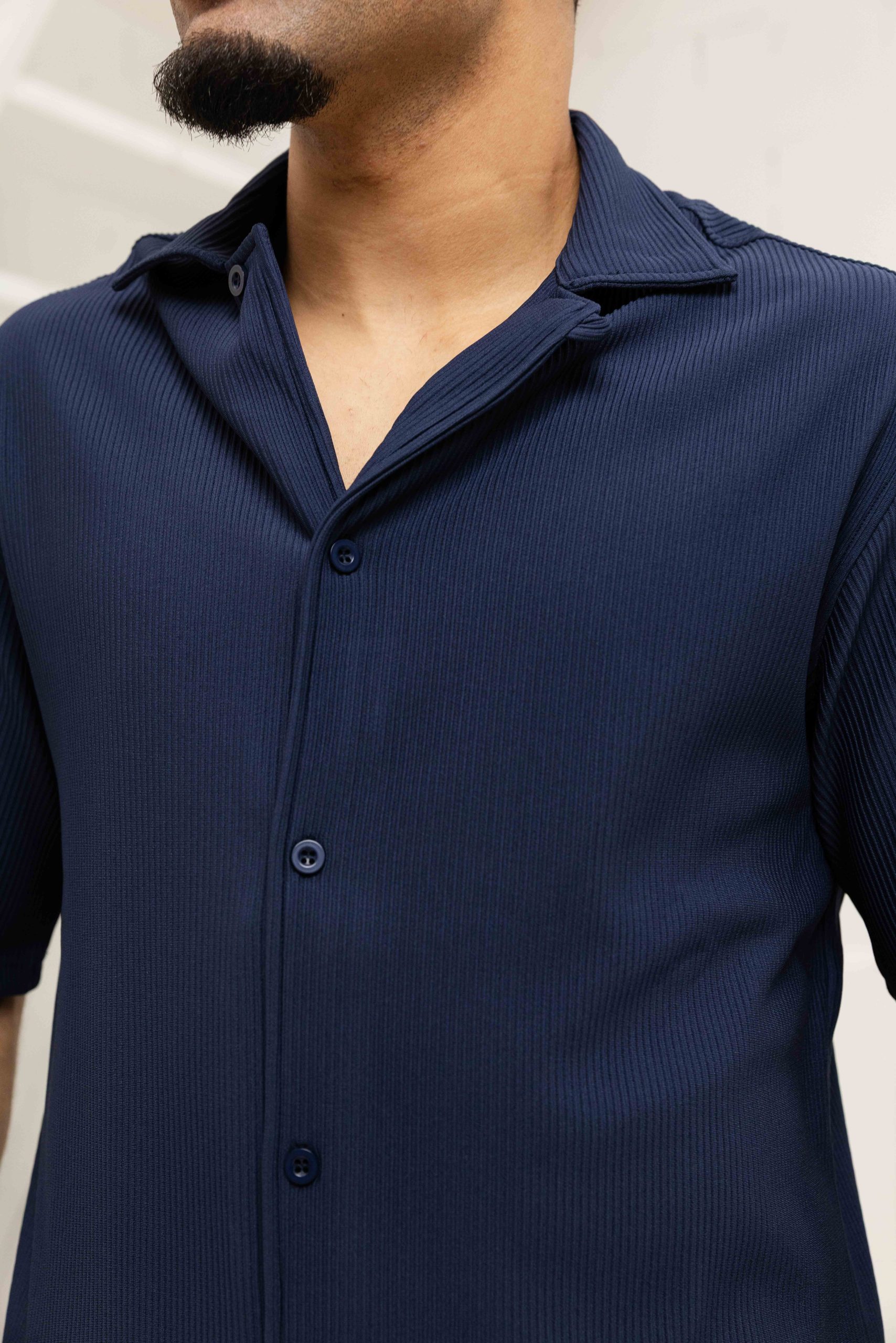 Malelions Ribbed Camp Collar Zomerset Heren Donkerblauw