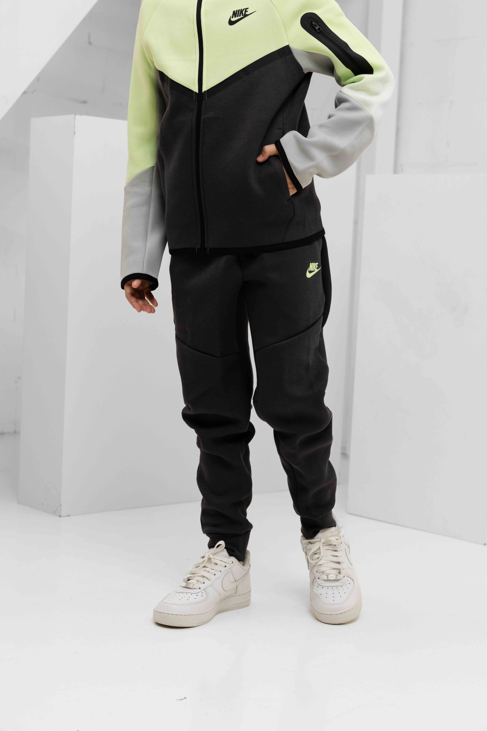 Nike Tech Fleece Trainingspak Kids Lichtgroen/Donkergrijs