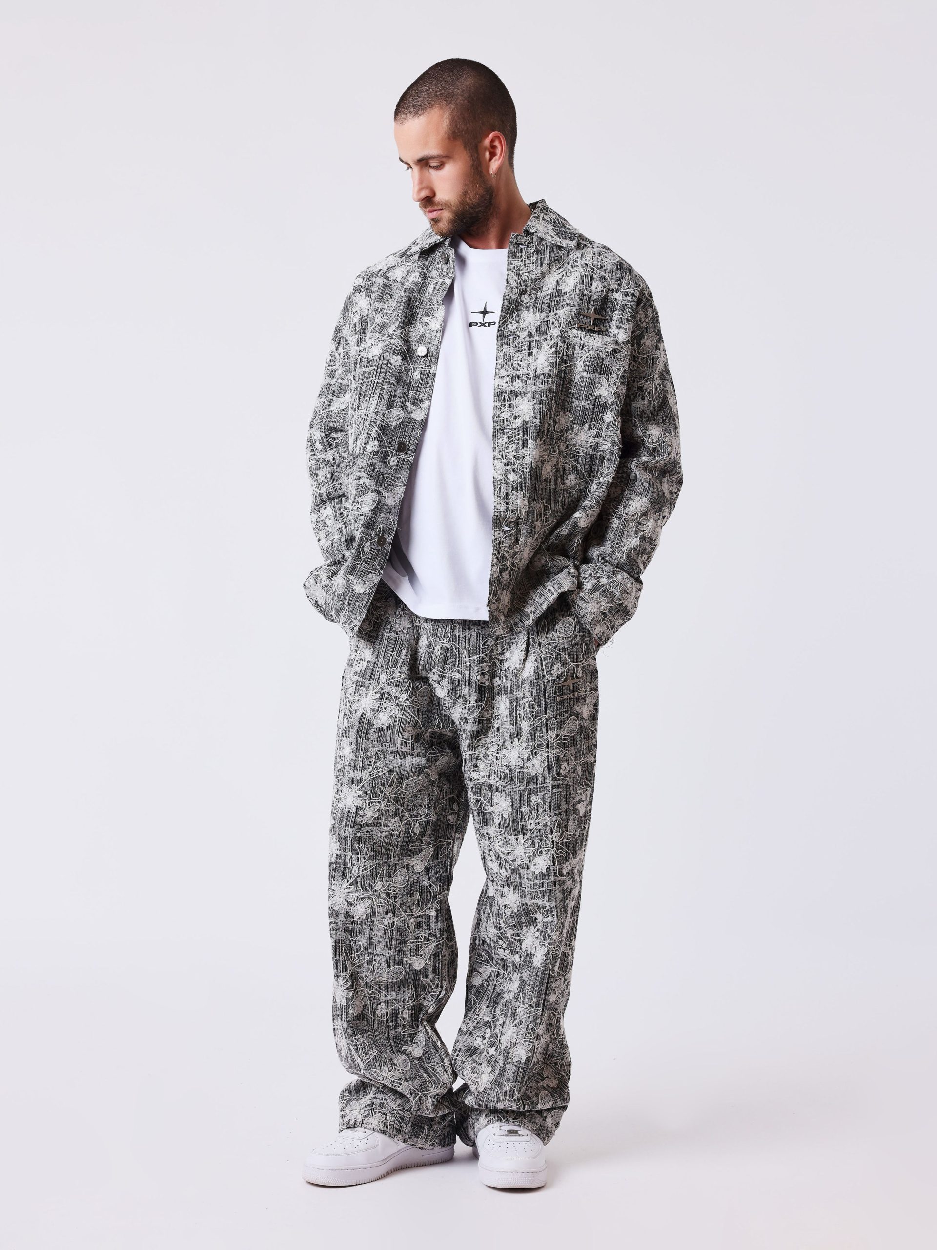 De Project X Paris Textured Set voor heren in het zwart/wit is een must-have item uit de Lente/Zomer collectie. Deze set bestaat uit een broek en een bijpassend shirt, beide gemaakt van hoogwaardig materiaal (80% polyester, 20% katoen) voor ultiem comfort. De set heeft een opvallend zwart/witte patroon en een loosefit pasvorm voor een trendy uitstraling. De lange mouwen en kraag zorgen voor een stijlvolle look, terwijl de knoopsluiting en zakken zorgen voor functionaliteit. Met twee buitenzakken en twee kontzakken is er genoeg ruimte om je essentials mee te nemen. Kies voor de Project X Paris Textured Set en maak een fashion statement deze zomer!