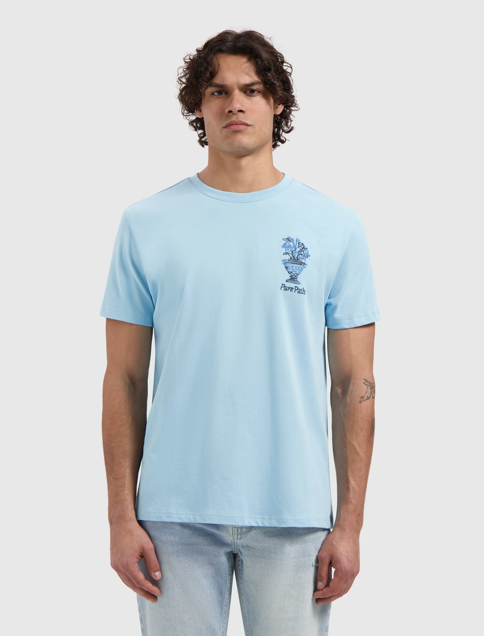 Pure Path Embroidered Vase T-Shirt Heren Lichtblauw