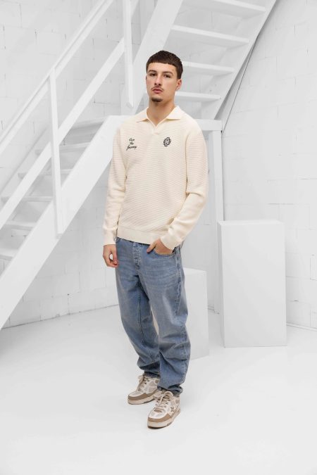 Own The Journey Knitwear Polo Sweater Heren Gebroken Wit