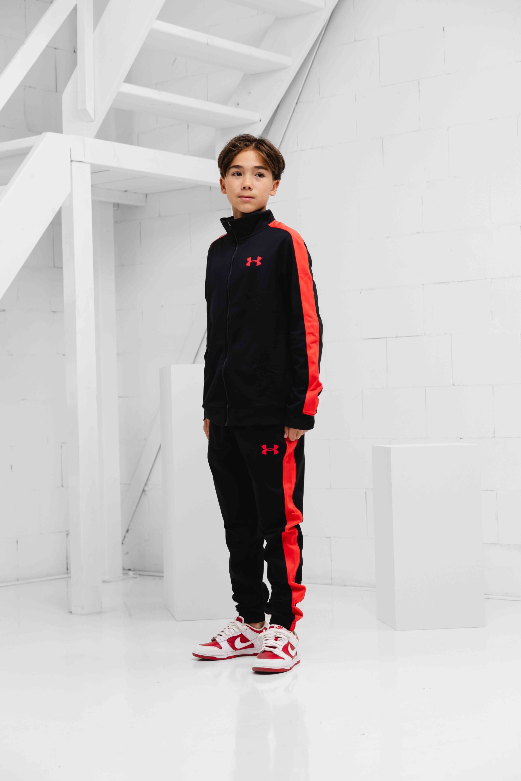 Under Armour Rival Knit Trainingspak Kids Zwart/Rood